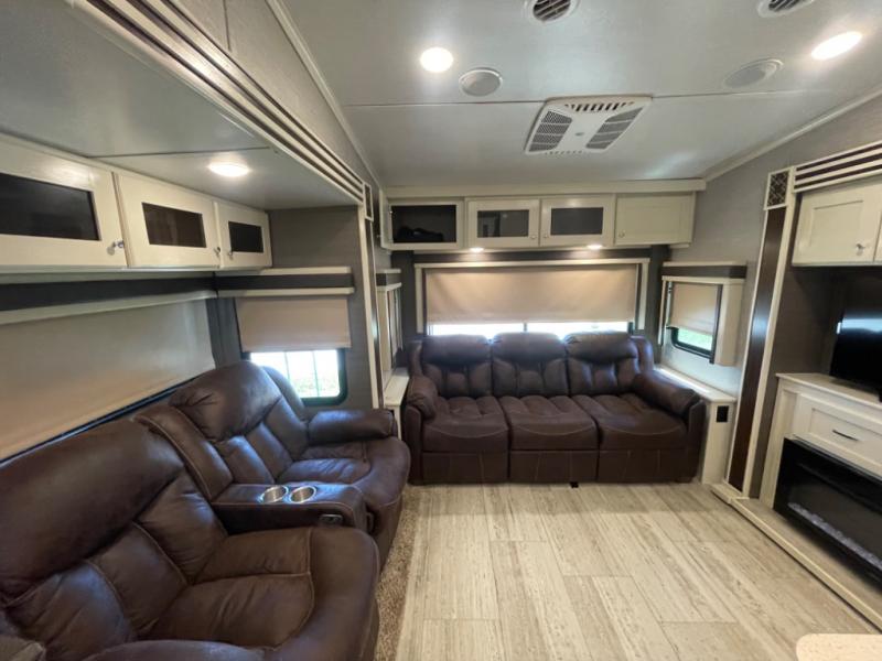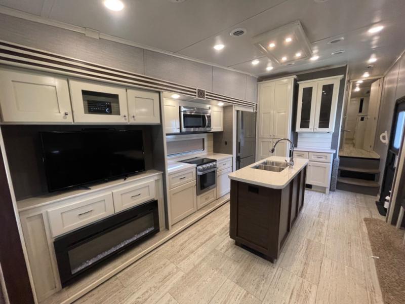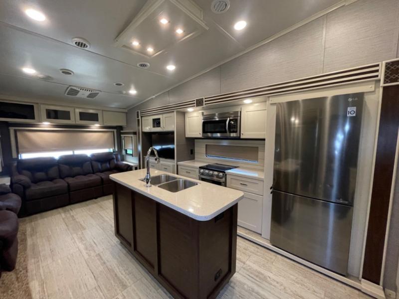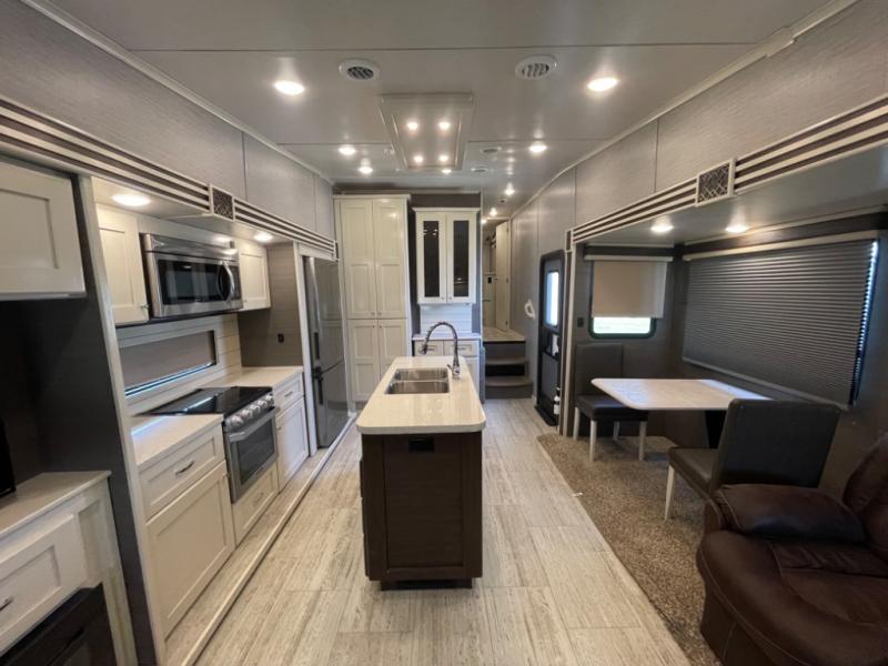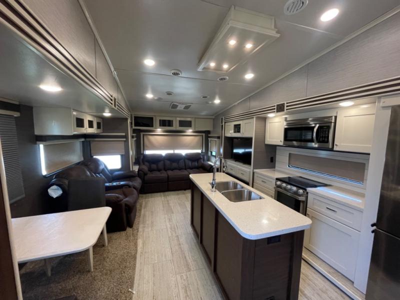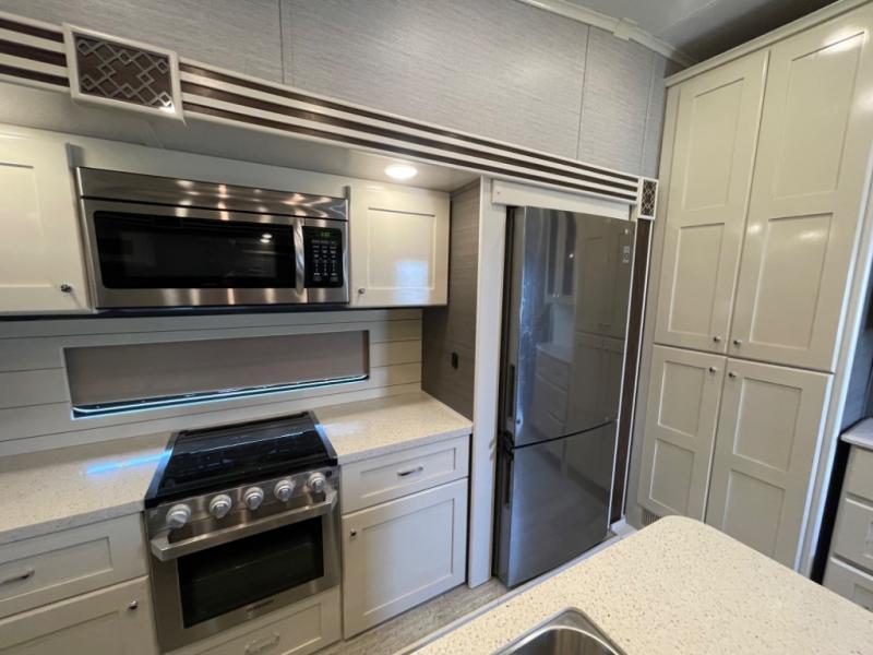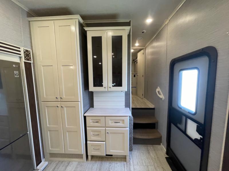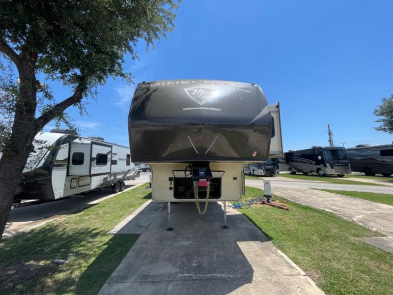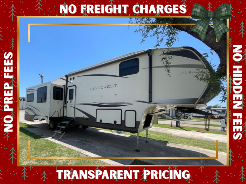 Prepare to be amazed by the stunning interior, the luxurious accommodations, and the innovative features found in each of the Pinecrest fifth wheels from VanLeigh RV! Each model features beautiful real wood doors and fascia legs handcrafted in house along with solid wood drawers and drawer fronts. The rigid Congoleum flooring will be easy to clean and the chef of the family will love cooking in the Pinecrest kitchen with its residential appliances and galley window for a view outdoors. And since these models feature 4-point electric auto leveling verses electric scissor jacks, you can set up camp in no time!