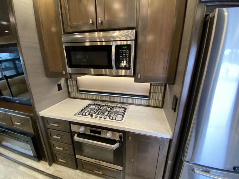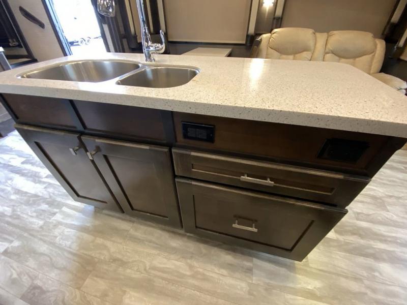 With each Vilano fifth wheel by VanLeigh you will enjoy many luxurious features that will make you feel you're at a resort instead of camping. Each model features a full profile ceiling throughout, high quality residential Franklin furniture that is made in the U.S.A, solid surface kitchen countertops, plus recessed LED ceiling lighting throughout. All of your entertainment needs will be met with an LED TV in the living area and a 32" TV in the bedroom, a sound bar with surround sound, plus an entertainment center with Bluetooth, DVD, and Aux controls. There is even exterior speakers that will allow you to be the life of any campground. Some of the other exterior features you are sure to love is the LED exterior lighting system, the motion-lit pass through storage compartment, plus the fully enclosed and heated underbelly with heat return will allow you to extend your camping season for year round fun!
