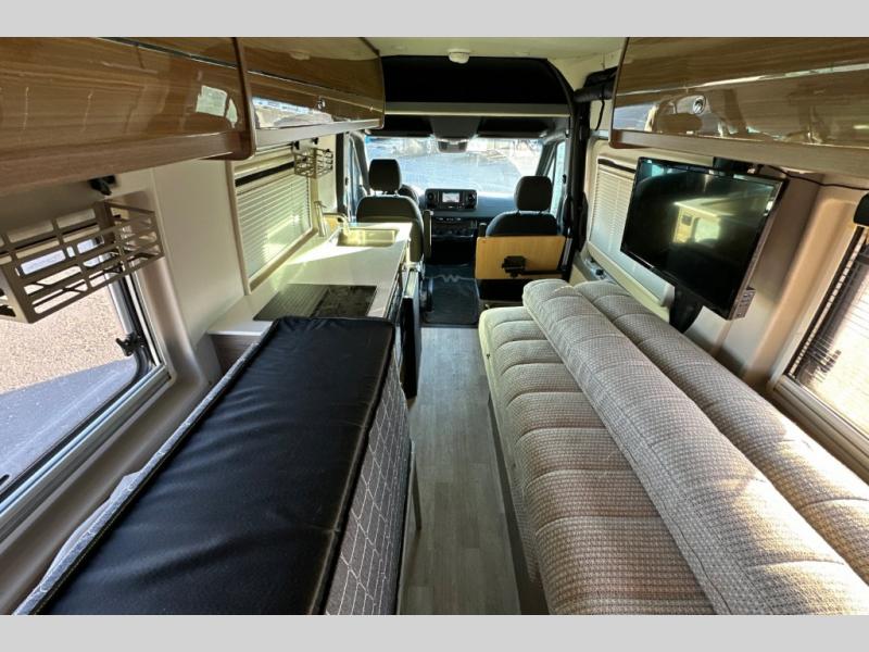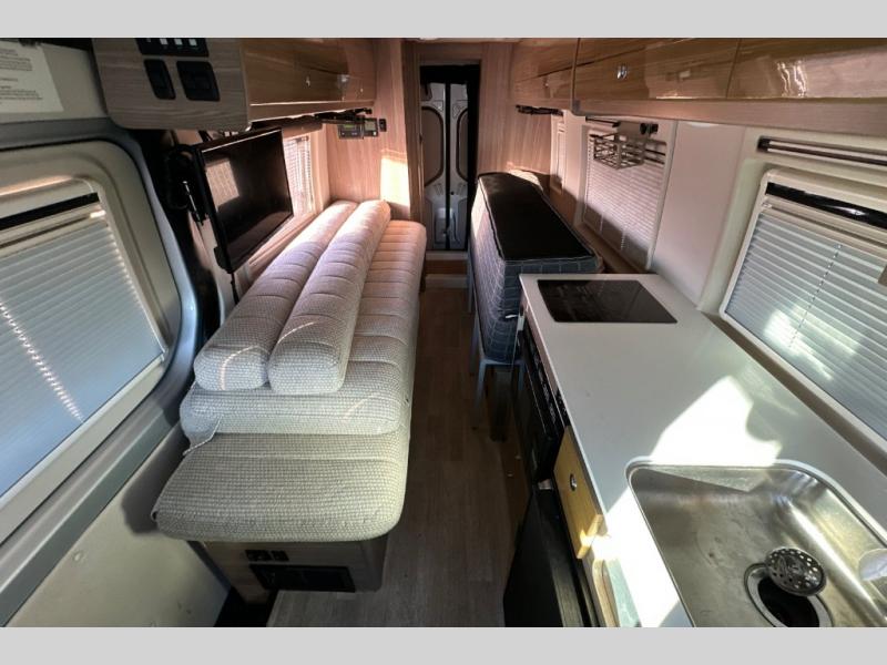 The Boldt Class B diesel motorhome by Winnebago state-of-the-art insulation, in-coach water lines, and Truma Combi Eco Plus heating to keep you comfortable in any season. You will appreciate the advanced safety systems, such as the MBUX infotainment system, the power seats, and the adaptive cruise control. Each model includes USB charging ports for your phone and tablet, vinyl flooring throughout, tinted coach windows, plus a JBL Soundbar and a 24" LED HDTV to keep up on your favorite shows. Outside, the powered sliding door allows an easy entrance, and the screen doors with magnetic closures lets fresh air in and keeps bugs out!