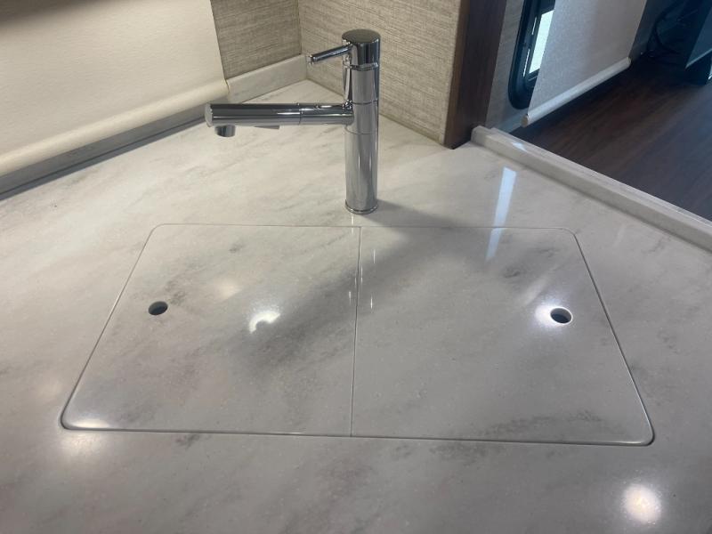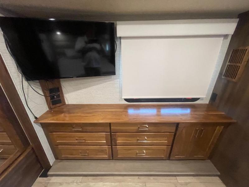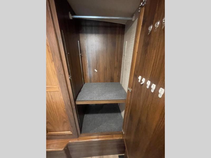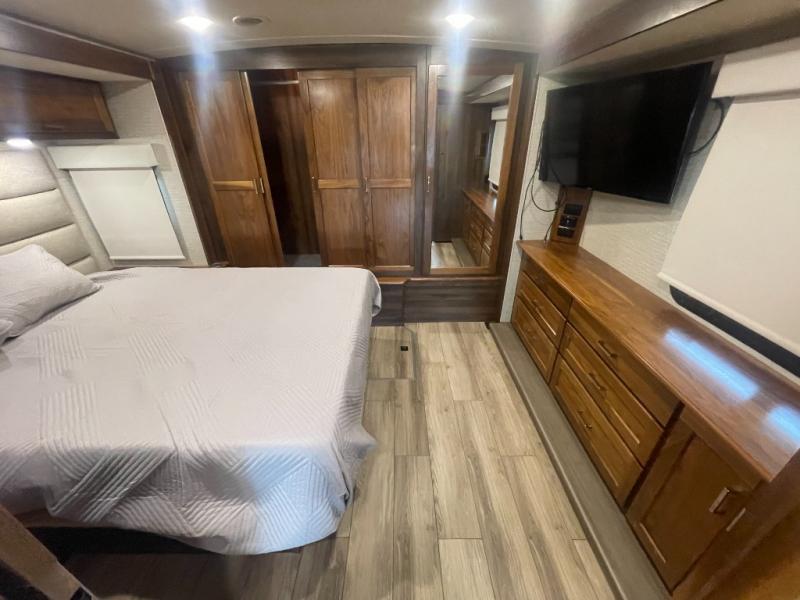 Experience true comfort each time you step foot inside this Forza Class A diesel motorhome. The open space from the three slides will make it feel more like home, and you'll find plenty of storage for all your valuables. The rear bedroom features a large wardrobe and a chest of drawers, and all your dry food items can go in the pantry just like at home. This model includes a TrueComfort+ sofa that sits directly across from the 50" HDTV, and you'll find additional seating on the BenchMark dinette and swivel cab seats. The chef of the family will love this Forza kitchen with its convection oven, three-burner cooktop, and a flip-up countertop extension for a little more prepping space. You'll also love the list of options that you can add throughout this unit, like a king bed in place of the queen bed, an optional fireplace, an optional washer/dryer, and an optional StudioLoft bed!
