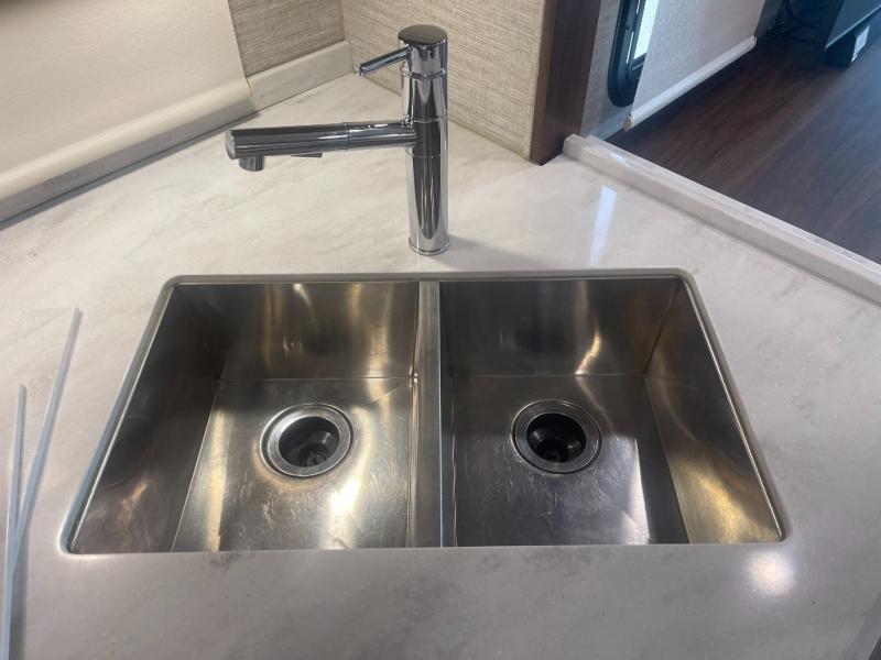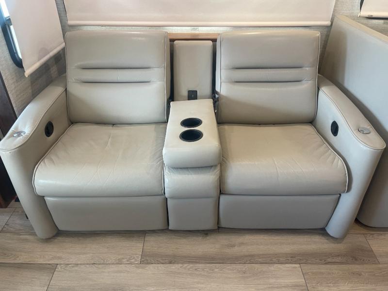 The Forza Class A diesel motorhome by Winnebago is a completely elegant and modern coach that provides versatility and comfort all throughout its upscale interior! Each unit features vinyl flooring throughout, USB charging ports in the cab, lounge, and bedroom, plus a home theater sound bar system that will pair perfectly with the 50" HDTV. There are many outdoor features you are also sure to love, like the two electric awnings with LED lights, the huge lighted storage compartments for all your gear, and automatic entrance steps for your convenience. You will also find the OnePlace systems center to be a great feature that will allow you to control key systems in your unit from one location, and as an added protection for all of those electronic features, the PowerLine energy management system prevents your system from overloading too much power.