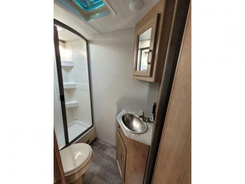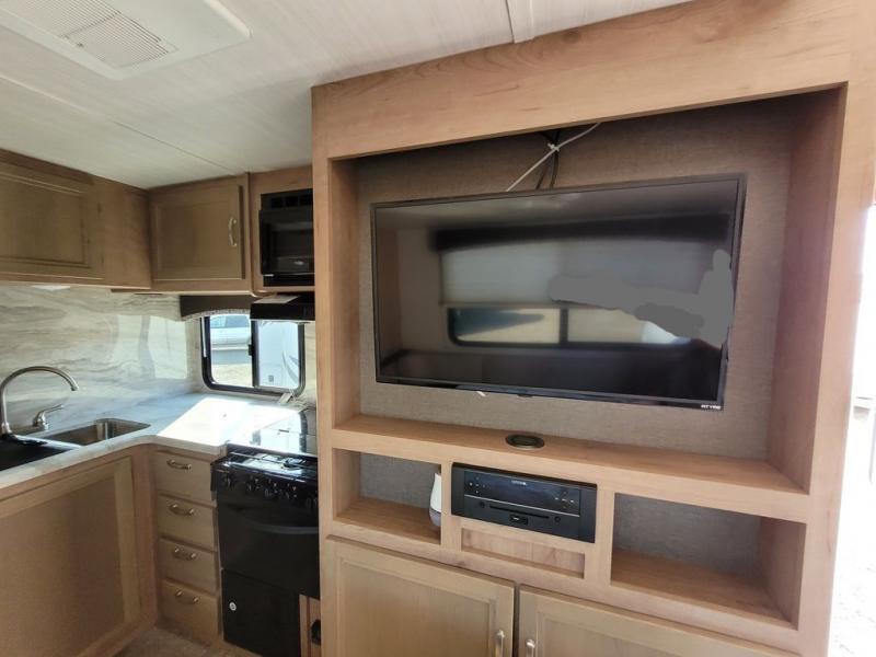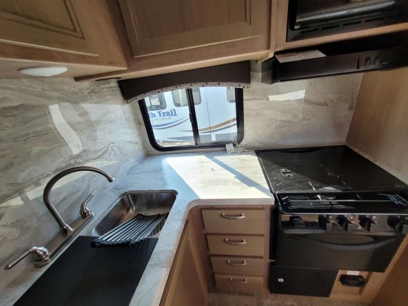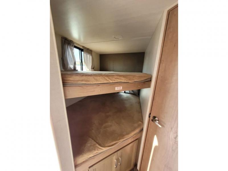 If you are looking to upgrade your RV for the family, look no further than this travel trailer that features bunk beds and can sleep up to six. The rear bath is right next to the bunks, making it easy for nighttime restroom runs for the little ones. In the morning, the chef of the family can prepare breakfast on the three-burner range and you can enjoy it at the booth dinette within the slide out or take it outside and sit under the awning as you plan out your day. Mom and dad will love the Murphy bed at the front of the unit and the divider curtain that provides a little extra privacy. This unit also includes an exterior Pack-N-Play door for your hiking gear.