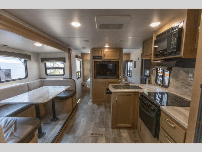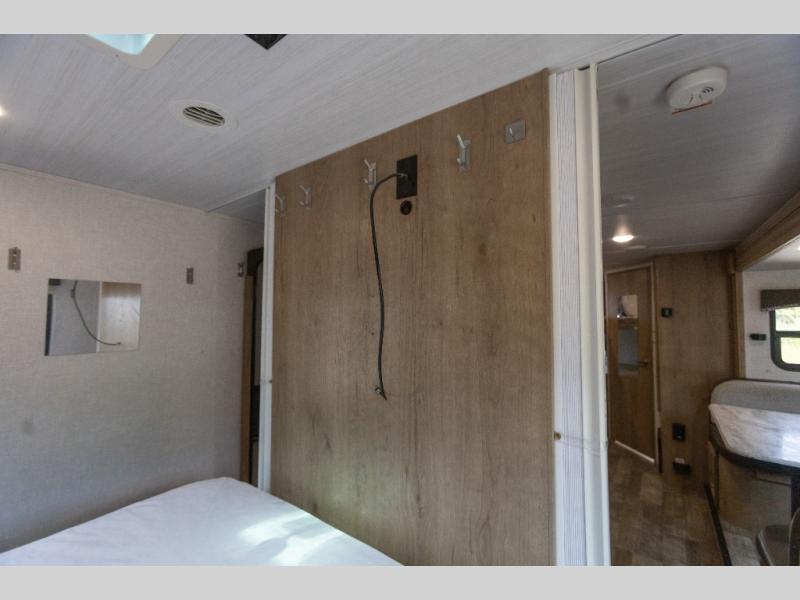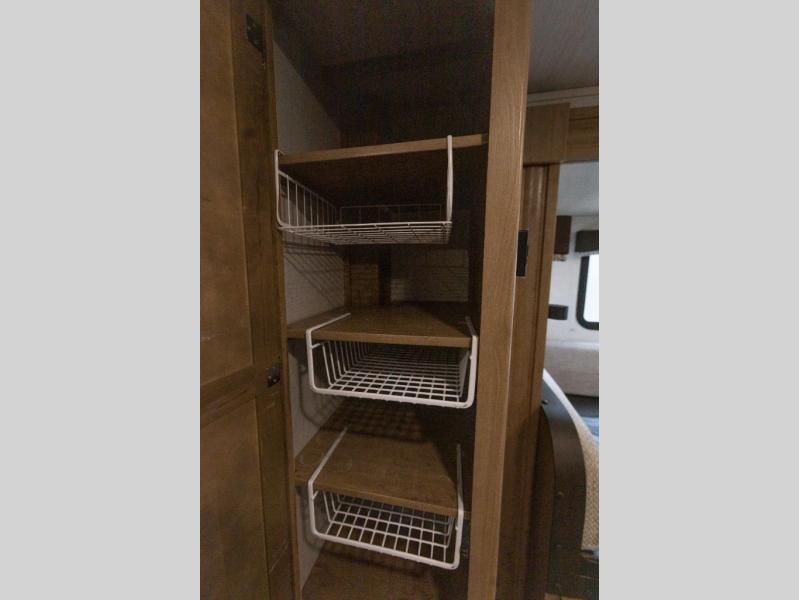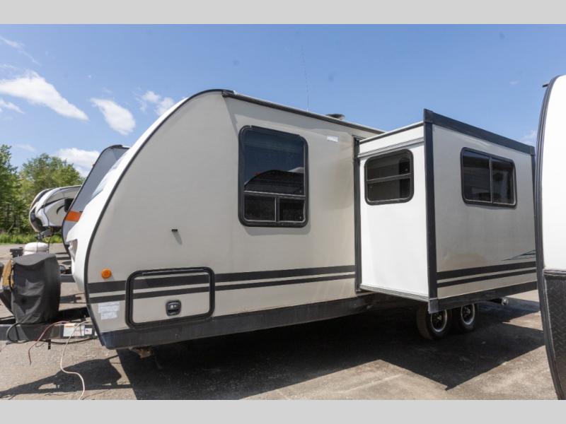 In any Minnie travel trailer by Winnebago Industries Towables, you will find increased living space with a fantastic single slide. On the inside, you will find each Minnie trailer to be full of life with light-colored interiors, easy-to-clean linoleum surfaces along with efficient LED lighting. The best-in-class exterior storage features 44 cu.ft. of space for all your camp gear, and the lockable storage door will help keep everything secure. You will also be the talk of the campground with your Minnie travel trailer because it comes with exterior fiberglass sidewalls.