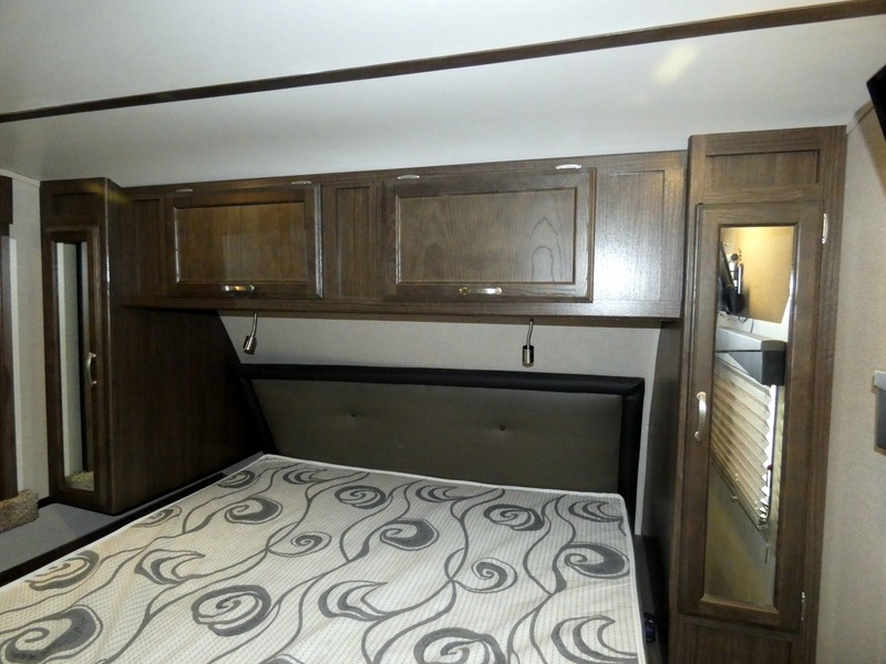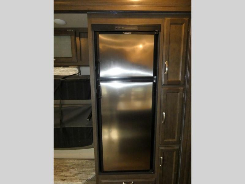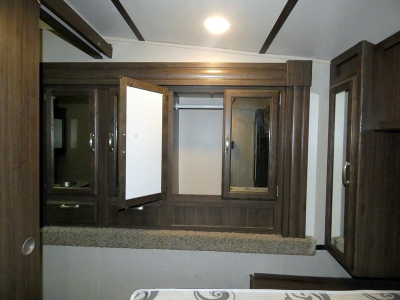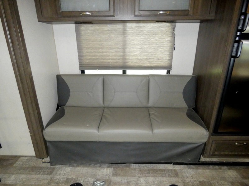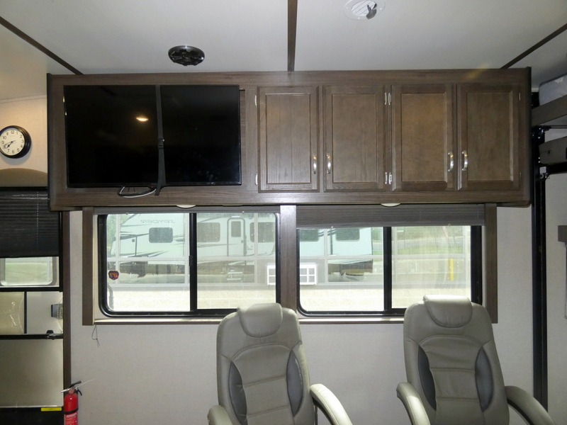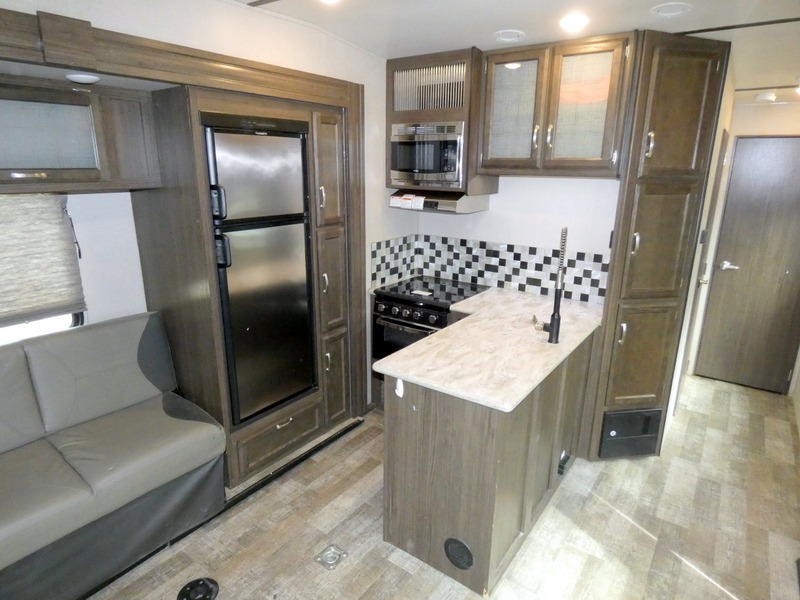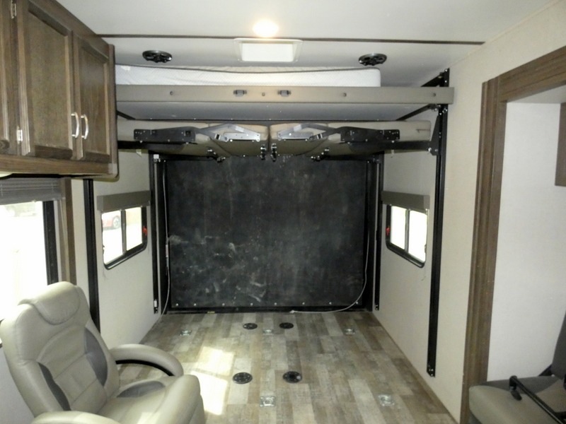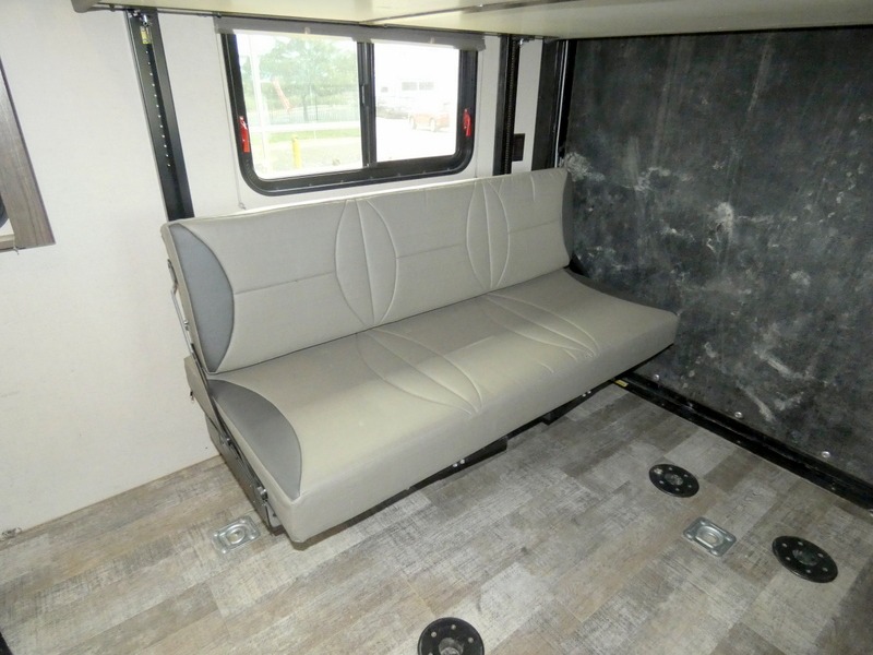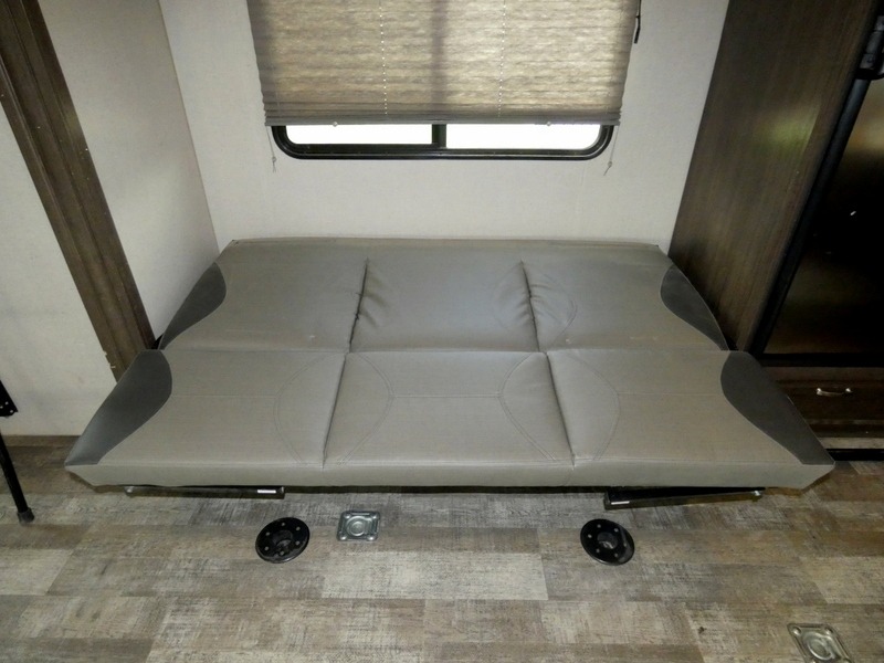 With double slides, a king bed, plus 14' cargo space, this toy hauler is packed with all the features you are sure to love. In the evening your guests can sleep on the Happi Jak sofas or on the drop-down queen bed in the garage and you'll appreciate your own private bedroom with access to the dual entry bath for convenience. Whip up some breakfast on the three burner range or make something quick in the microwave before taking your Harley on a ride and you'll appreciate a full bath to clean up after a long day. This unit also includes a 70" wall-mount sofa that is great for watching a movie on or for even more sleeping space.