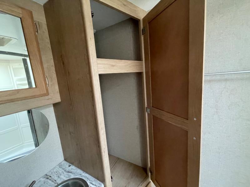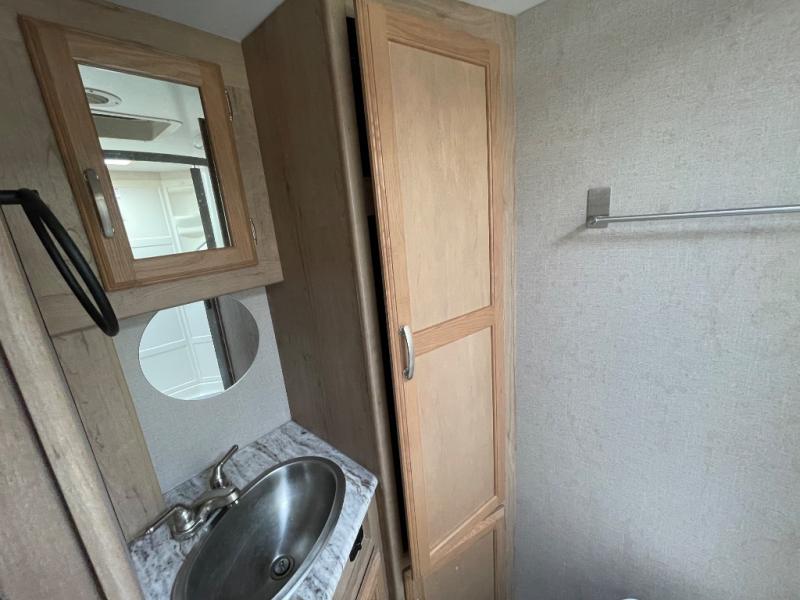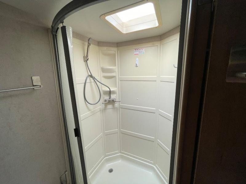 Set your sights on this travel trailer the whole family will love. Set up camp, have a look around the campground, then head back to prepare lunch on the three-burner range. The kids can relax on one of the two sofas and you'll find additional sleeping space here as well. Mom and dad will love the semi-private bedroom with a Murphy bed that conveniently folds up during the day for more space. There is no need to use the camp's facilities since this model includes a full rear bath and there is a wardrobe and a shower skylight!