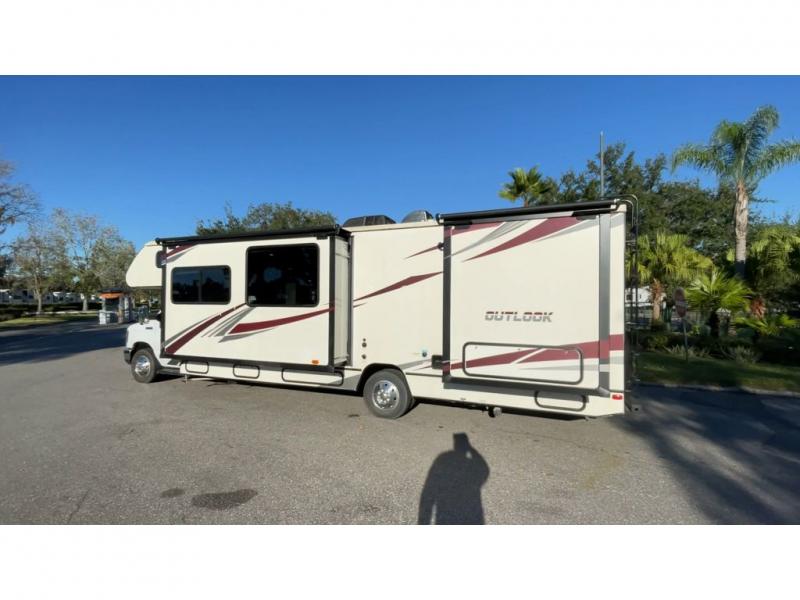 Enjoy the ride as much as the destination in this Outlook Class C gas motorhome. After sitting in comfortable captain's chairs, you can retire to the main living area once you have reached your campsite. You can dine at the booth dinette or relax on the sofa bed while watching the 32" HDTV, and you will find plenty of storage with the bedroom wardrobe, kitchen pantry, and double-door residential refrigerator. If the kids joined you on this trip, they will have the choice of sleeping on the overhead bunk, the booth dinette, or the sofa bed away from mom and dad. Take a look! You'll be happy you did!