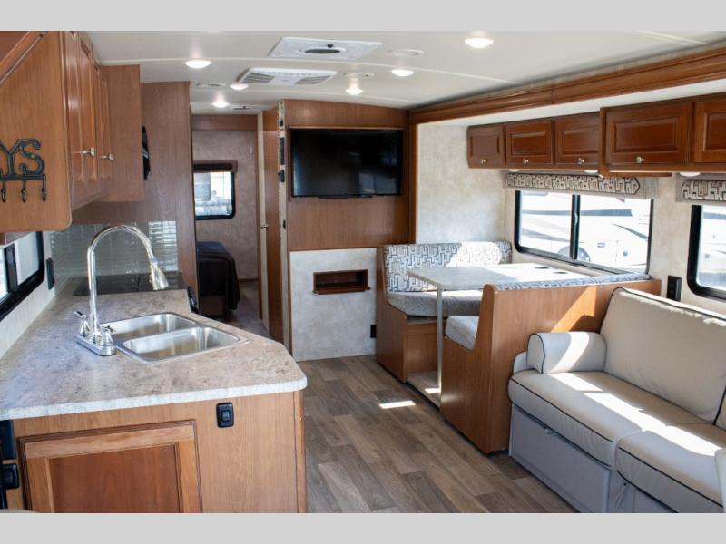 Each Sunstar Class A gas motorhome by Winnebago is built on a Ford F53 chassis and includes automatic hydraulic leveling jacks for easy setup, rearview power mirrors with defrost and power adjust, and a large panoramic windshield for great views while driving or relaxing. The interior offers beautiful decor choices, a OnePlace systems monitor, vinyl flooring throughout, USB chargers throughout, and is satellite system ready. Start getting a little sunshine without breaking the budget, choose your favorite Sunstar today!