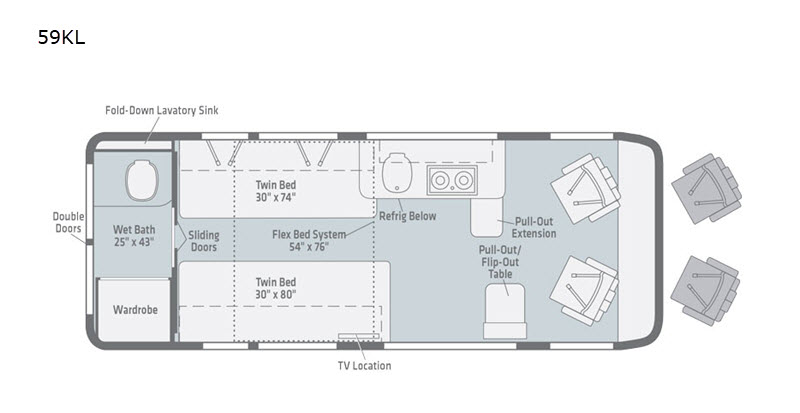 This Travato Class B gas motorhome is ready to hit the road when you are! Once you reach your destination, you will find that both the driver and passenger seats swivel around and offer extra seating inside. In the evening, you can enjoy watching television or a movie on the 24" HDTV before you turn in for the night. Sleeping space can be found on the two twin beds, or you can use the Flex Bed system to join the two twins together to create a larger bed if you wish. You will appreciate the convenience of your own on-board wet bath and kitchen amenities especially with the Pure3 Energy System that allows you to push a button for power! Check out this unit today!