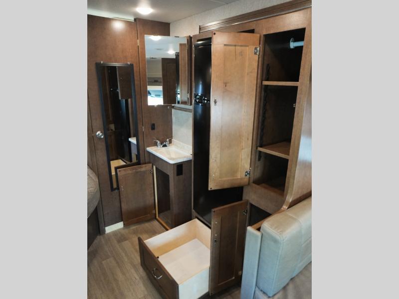 Step inside this spacious Winnebago Vita 24F and find a motorhome that will take you on a trip of a lifetime! It features a rear corner bath for added privacy, and a comfortable 50" x 80" bed for you to enjoy a good night's rest. There is also an overhead bed above the cockpit to give you another sleeping spot while still saving space throughout the unit. You will have plenty of space to store all of your items between the multi-use storage cabinets as well. Your meal times can be family time when you enjoy them at the booth dinette, and you can even transform it into an extra sleeping space too!