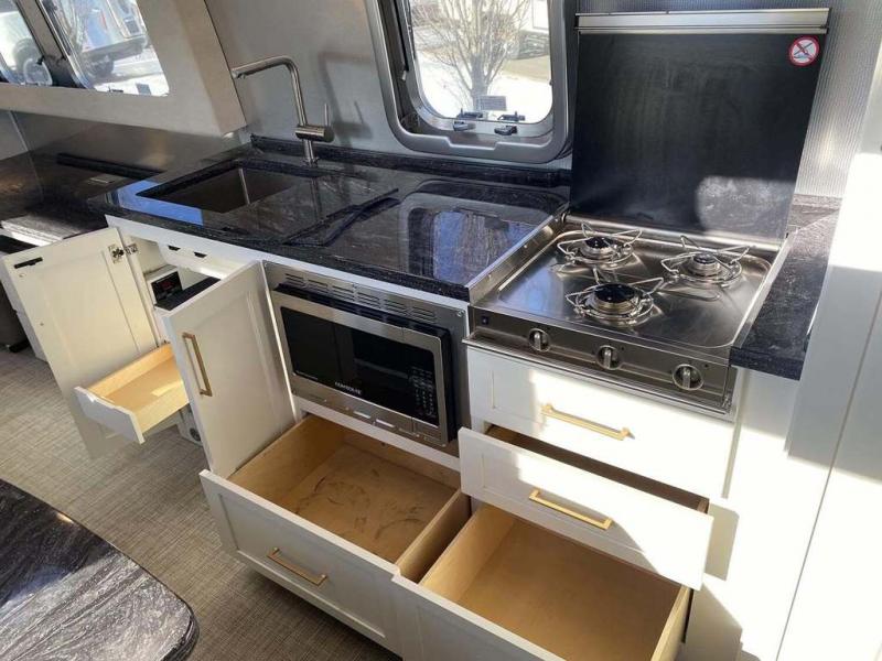 The Airstream Classic travel trailer is both timeless and memorable for good cause! The Classic is the epitome of comfort, elegance, and sophistication, and it provides you with many essential amenities that will make your road trips feel like a destination getaway. The Quietstream climate control easily and quickly cools the interior with practically no noise, and a little touch like the doorbell is what will aid these trailers in feeling like home. The power awning is sure to be one of the features you use the most as you sit outside, and the rear-view monitoring system makes backing up quite easy. The Classic also comes with a 270W solar package with interior monitor, solar front window protection, an Airstream connected Wi-Fi service, Airstream Smart Control with app, and a safe for your valuables.