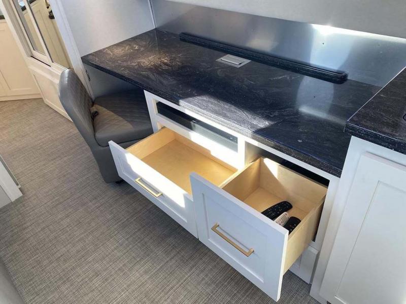 You absolutely will not be disappointed when you choose to get away for an extended vacation or full-time living with this Classic travel trailer! Surrounded by high-end kitchen features, a stunning bathroom, and a comfortable bedroom oasis with a power queen bed, you will always feel right at home. This unit also gives you the most pleasant morning experience because of the front panoramic windows that engulf the bedroom and allow you to wake up with the sun, or if you prefer to keep the blackout curtains closed throughout the night, you can sleep in for as long as you like without being disturbed by the bright light.