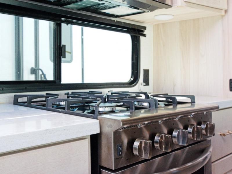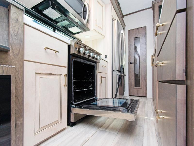 Enjoy a flush-floor kitchen slide, the industry’s largest oven, and ample counter space—perfect for cooking like you're at home. -