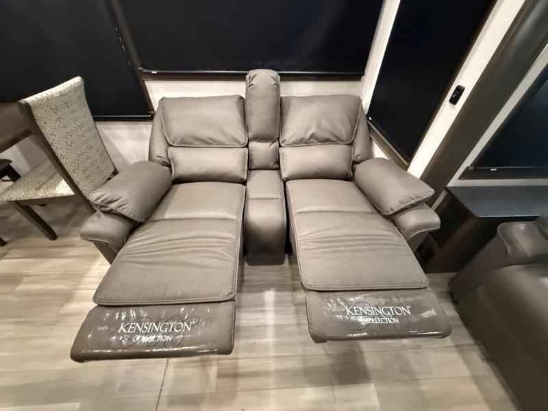 Rear living area with theater-style seating, a fireplace, large TV, and plenty of seating options—great for relaxing or entertaining.