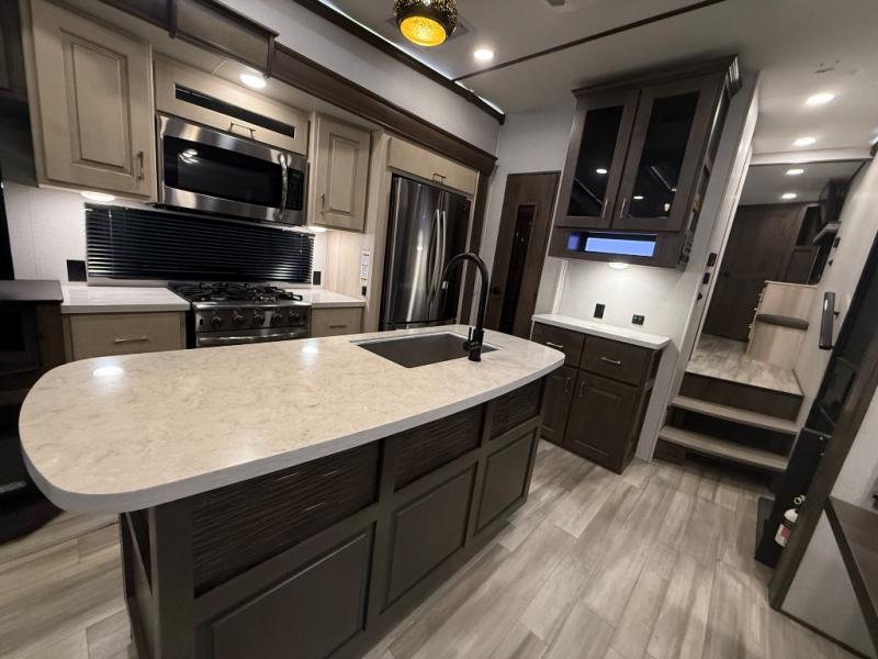 A full-featured luxury fifth-wheel built for comfort and longer stays.