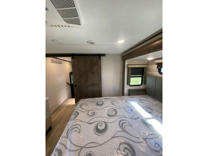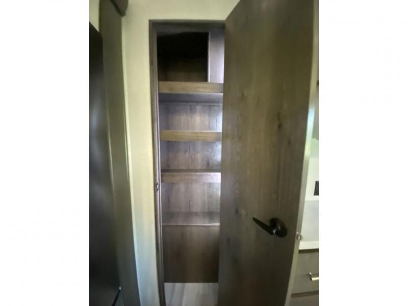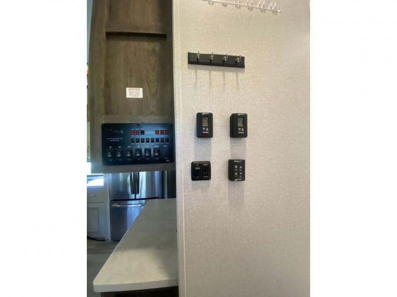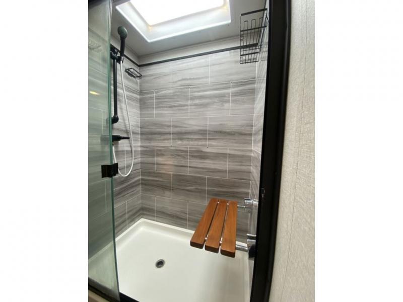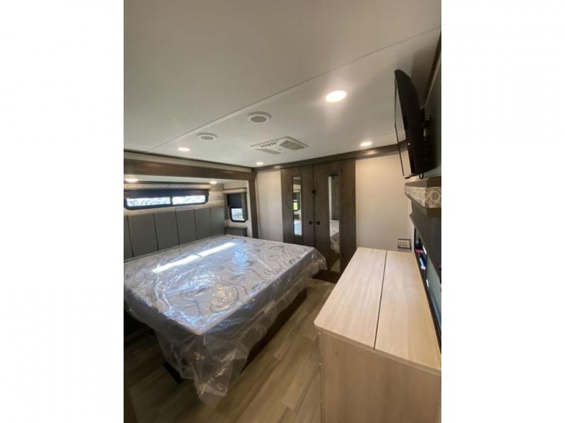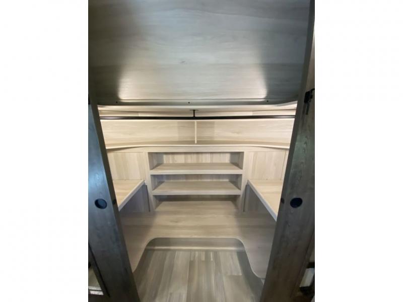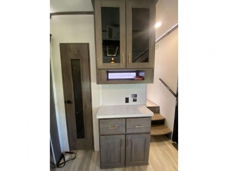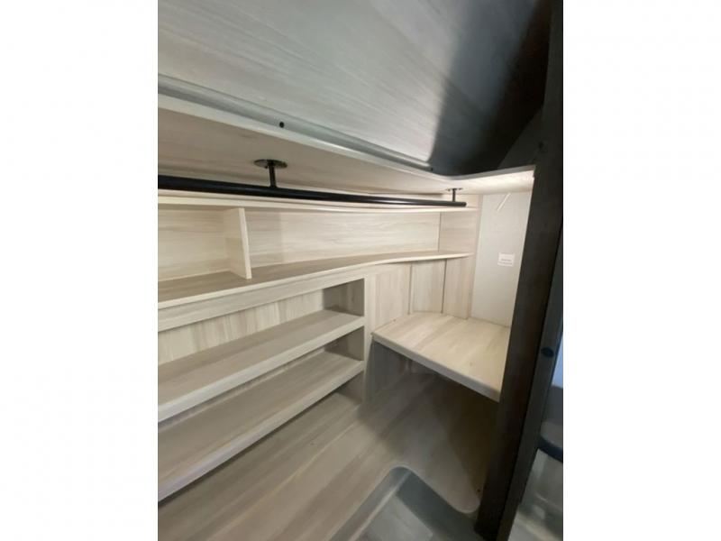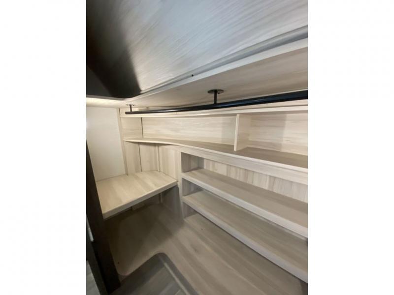 Throughout this entire Paradigm fifth wheel, you will be stunned by the residential, high-quality features! The kitchen is exceptional with its Insignia microwave, Insignia four-burner range, industry's largest oven, prep for a dishwasher, and peninsula countertop. The flush-floor kitchen slide also ensures that you won't stub your toes while you're preparing dinner, and the 18 cubic foot refrigerator will hold so much food! The technological features found on this unit are top notch, like the two Smart TVs, the USB charging ports, the dimmable LED lighting, and the marine-grade exterior speakers. Bring all of your favorite sweaters and sneakers in the walk-in closet located in the front private bedroom, and spend some time getting clean each morning in the large residential shower.