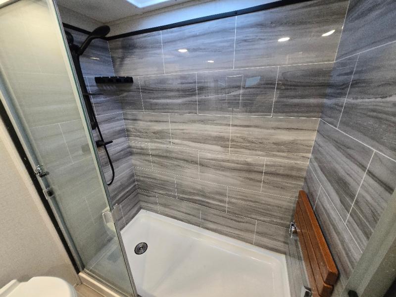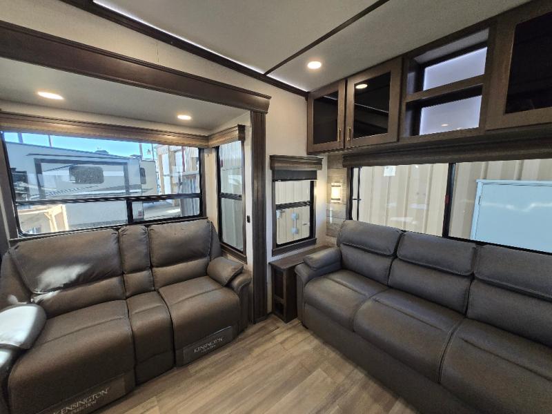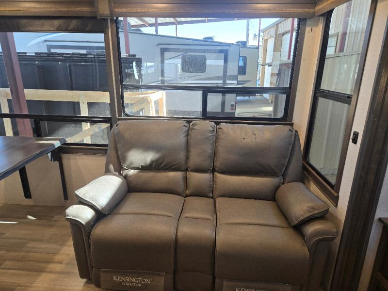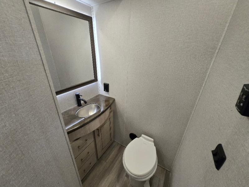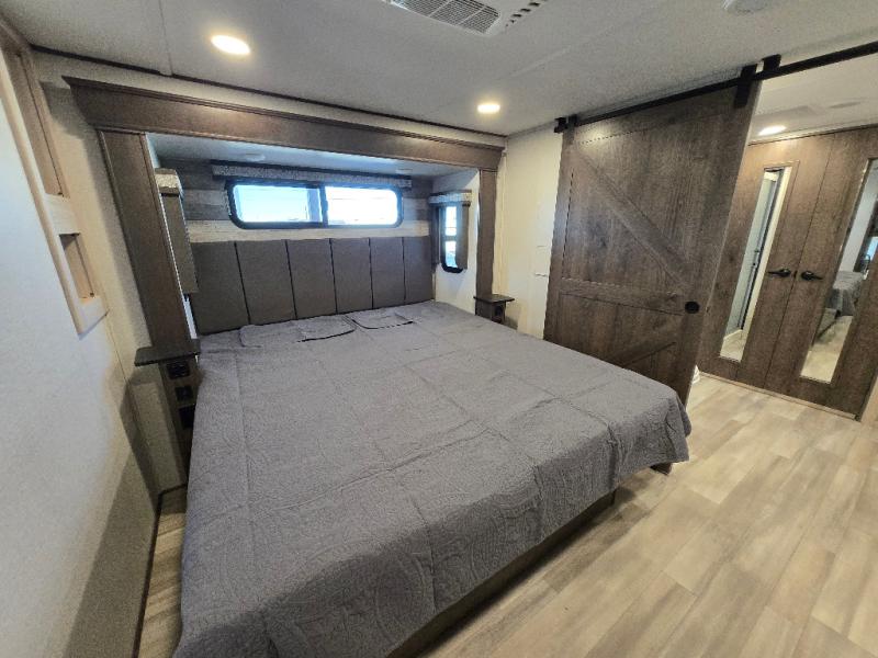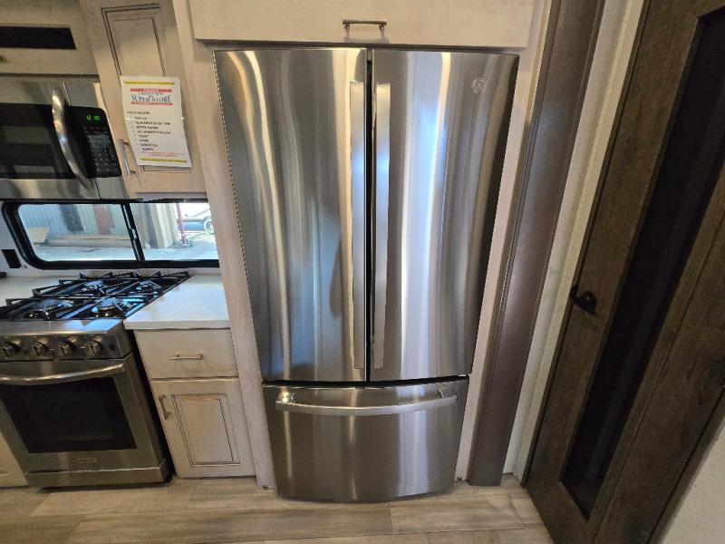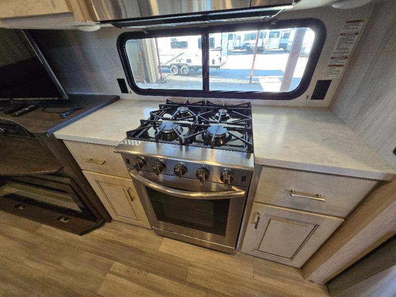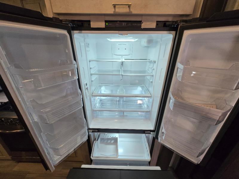 This Paradigm fifth wheel is an absolute dream! Whether it's the sunlight streaming in through the Atrium windows, or it's the bright LED dimmable lighting on the interior, you will find illumination all throughout this unit. The backlit crown molding in the living area provides an elegant feel to this already stylish fifth wheel, and modern technology is abundant with the two Smart TVs, USB charging ports, and LED motion lights in the pantry. You will be completely set for full-time living with the preparations for a dishwasher and the preparations for a washer/dryer, and the hamper in the walk-in closet will make it easy to keep your dirty clothes out of sight.