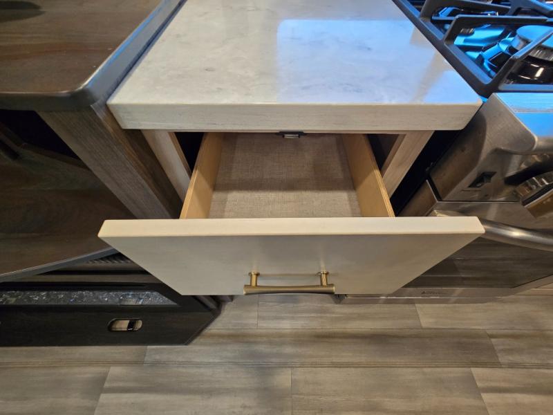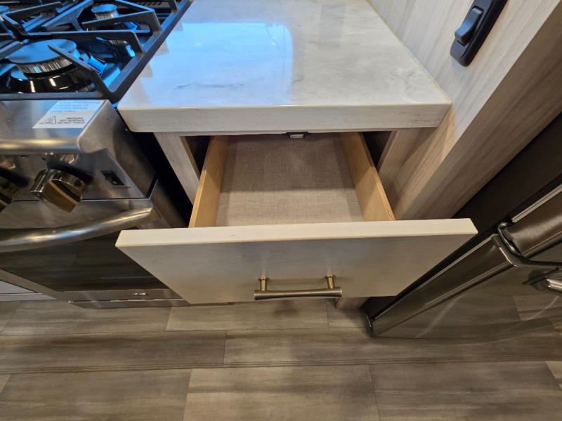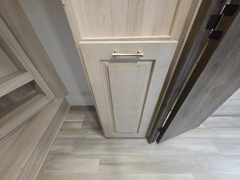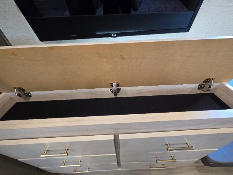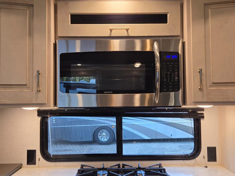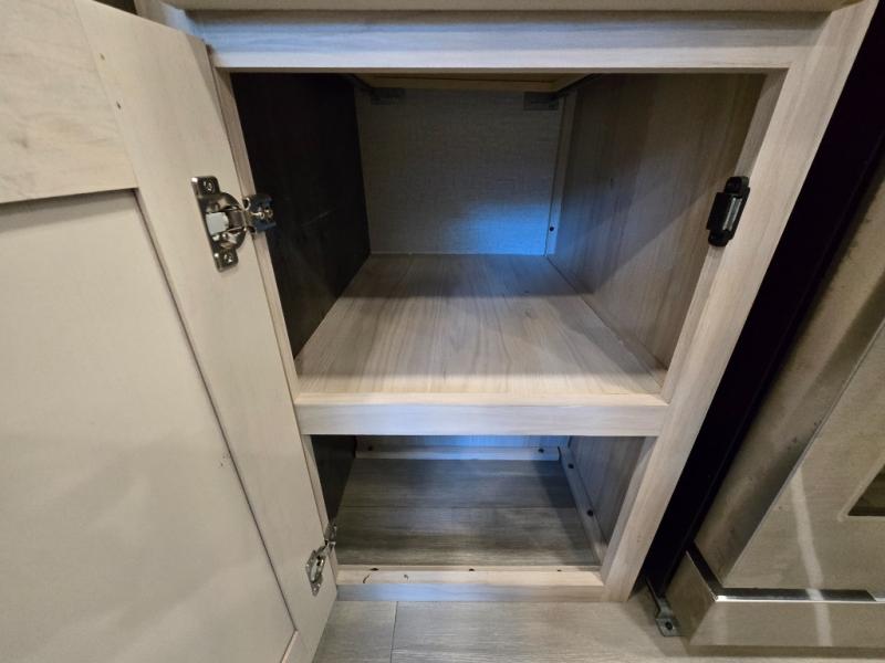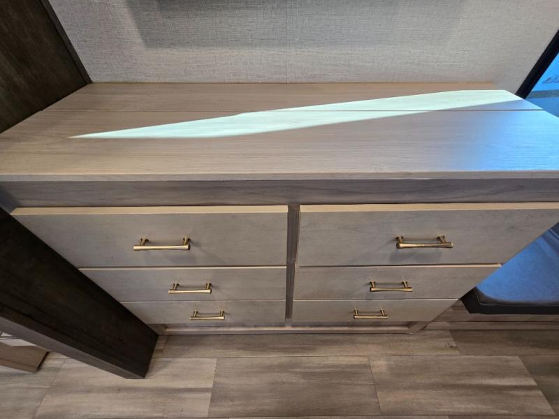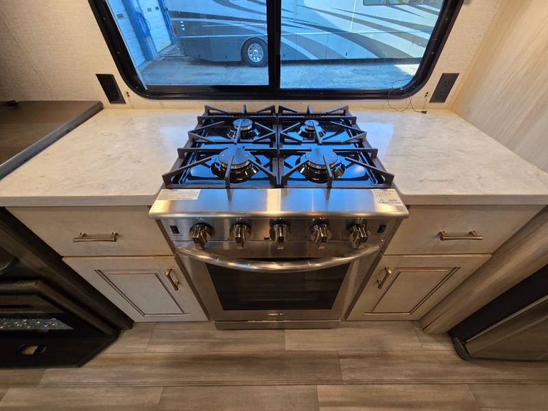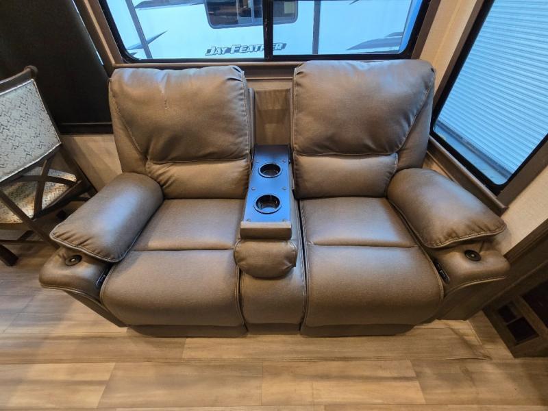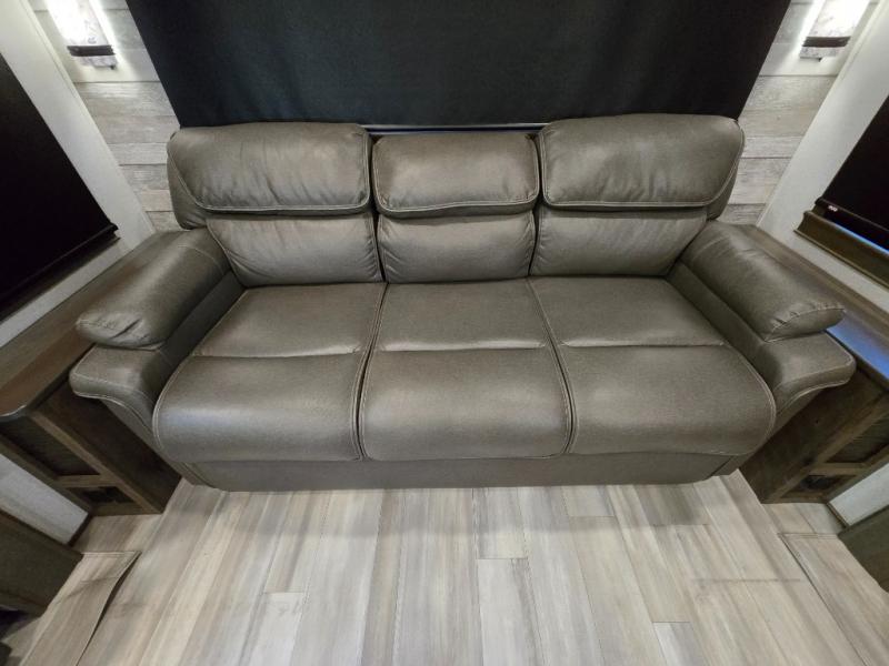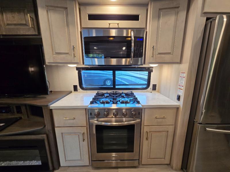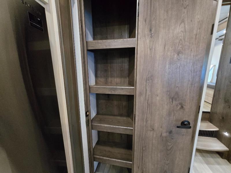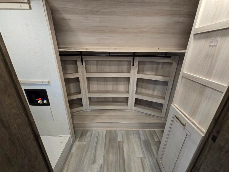 The 370FB stands out because it offers a true residential front bathroom with walk-in closet, a half bath for guests, and upscale residential design details that make it especially attractive for full-timers.