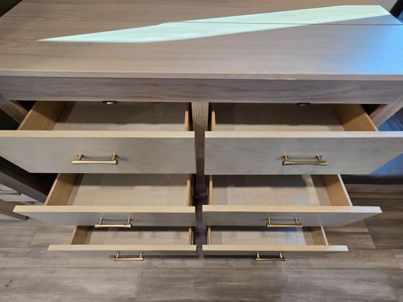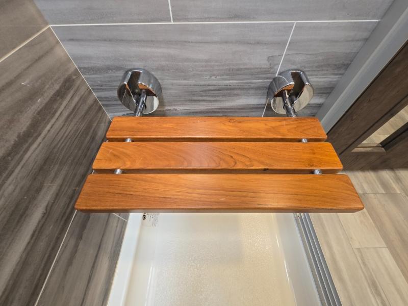 Full and Half Bath – rare layout with a massive front bathroom plus a convenient half bath mid-coach.
