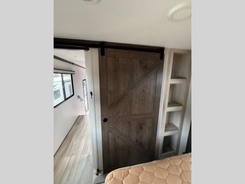 You will be amazed by the amount of sleeping accommodations found in this Paradigm fifth wheel! With the king bed slide in the front private bedroom, the sleeper sofa in the multi-purpose room, the loft, and the sleeper sofa in the main living area, this unit has the capacity to sleep eight tired campers. That makes it a truly great extended-living fifth wheel! A couple of other features that make this unit perfect for full-time living are the premium residential shower, the residential appliances, the walk-in closet, the prep for a washer/dryer, and the two Smart TVs, and the enormous Atrium windows make it superbly easy to view the scenic landscape surrounding you.