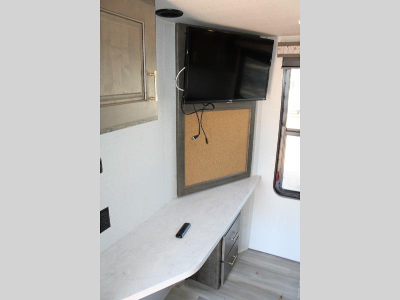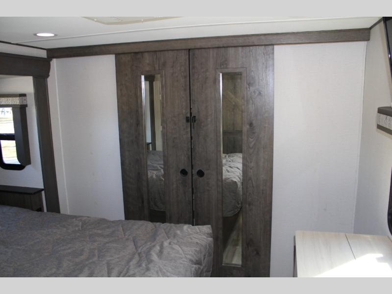You will be amazed by the amount of sleeping accommodations found in this Paradigm fifth wheel! With the king bed slide in the front private bedroom, the sleeper sofa in the multi-purpose room, the loft, and the sleeper sofa in the main living area, this unit has the capacity to sleep eight tired campers. That makes it a truly great extended-living fifth wheel! A couple of other features that make this unit perfect for full-time living are the premium residential shower, the residential appliances, the walk-in closet, the prep for a washer/dryer, and the two Smart TVs, and the enormous Atrium windows make it superbly easy to view the scenic landscape surrounding you.