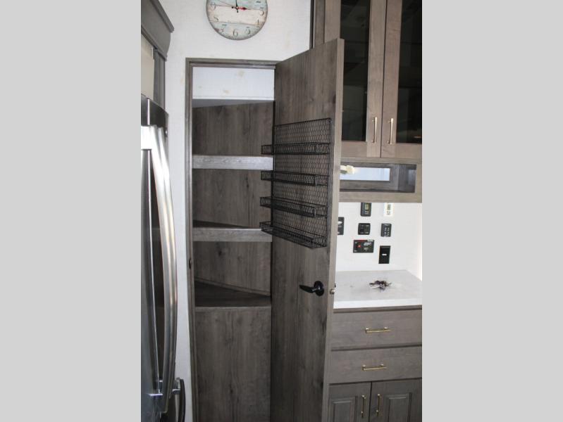 The Paradigm fifth wheel from Alliance RV is absolutely a dream to own because it combines high quality and luxury with features that you have specifically requested over the years! Some of the exterior customer-driven features are the Benchmark chassis, the G-range tires rated at 4,400 pounds, and the MorRyde CRE3000 suspension, and the Paradigm offers some of the industry's largest tank sizes at 98 gallons for fresh water and 106 gallons for gray water. The PVC roof covering will do an excellent job at protecting your RV from water intrusion, and it has increased solar reflectivity. You won't find any carpet in the Paradigm, and another great feature that has been reconstructed to meet the customer's needs is the flush-floor slide. The soft-close doors and drawers with magnetic catch are a high-end residential feature that isn't typically found on other RVs, and the excellent hidden storage capabilities of the Paradigm will surprise you when you find them.