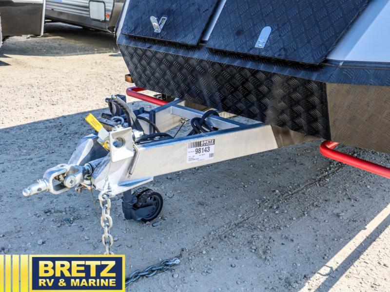 The Black Series Camper travel trailer and toy hauler were specifically designed to go on diverse and expansive terrain! These trailers have high quality and intense durability so that you can have great luxury while away from home. You will find solar panels to use when you are off-grid, and there is a 12V/120V electrical system and 100AH batteries for power. You will be able to access hot water with the 6-gallon Atwood gas hot water heater, and the independent suspension is exceptionally smooth for traveling.
