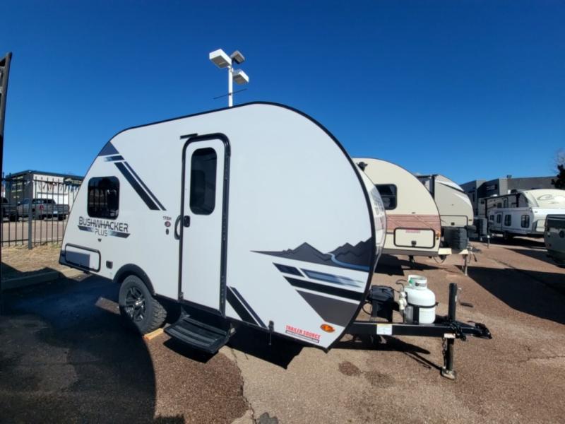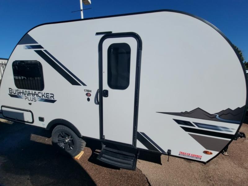The 2021 Braxton Creek Bushwhacker Plus 17BH is a 19-foot, lightweight (approx. 2,360–3,320 lbs) tandem-bunkhouse teardrop trailer built for off-road capability with high-clearance axles and all-terrain tires. It sleeps 4–6 people via two rear bunk beds and a front U-shaped dinette that converts into a bed.