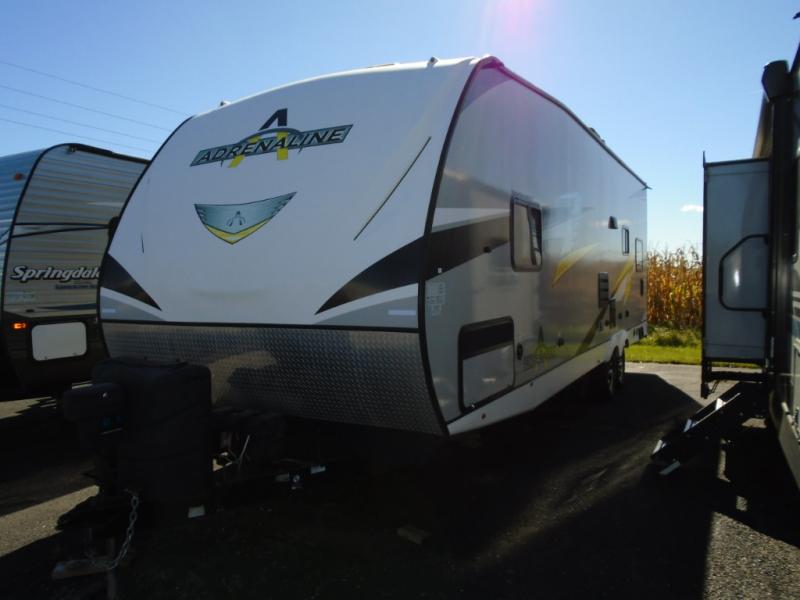 With a 102" wide body construction and a zero gravity ramp door, you can easily load up your off-road toys into any one of these Coachmen RV Adrenaline toy hauler travel trailers! The rain gutters with extended drip spouts and vacuum bonded walls with Azdel composite panels ensure water won't cause damage to your trailer. Heavy duty Dexter axles with Nev-R-Adjust brakes will get you to your destination safely and once you arrive the BAL electric stabilizers will provide the stability you desire. You can camp anytime of year without worrying about your trailers vitals thanks to the heated and enclosed underbelly. And keep your electronics charged with the USB charging ports throughout and your spirits high with the exterior marine grade speakers!