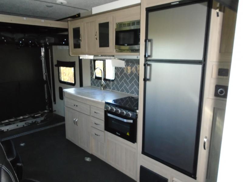 Your family or friend group will love this toy hauler that can sleep six people thanks to the electric queen bed with dual sofas underneath and the king bed in the front master bedroom. You can keep your toys fueled and ready to go with the 30 gallon fuel station and the zero gravity ramp door will allow for easy loading and unloading. This model includes all the kitchen appliances to create meals each day and the dual entry bath is accessible from the front master bedroom and the hallway for your guests. You will also find a rear pull down screen, pull-down roller night shades to be able to sleep in late, and a solar package to help you stay off-grid.