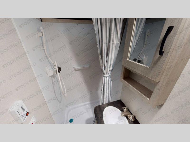 Step inside this Apex Nano travel trailer and see just how convenient your next camping trip will be. This model is perfect for two travelers or a small family to enjoy camping at a state park. The dinette slide provides a place to relax, offers extra floor space for everyone, and can be used as an extra sleeping space. The rear full bath allows you to skip the public facilities, and it is very convenient at night. A comfortable queen bed can be found up front, and there is plenty of storage throughout the interior and on the exterior with the front pass-through compartment that is accessible from either side. Load up your gear and head out!