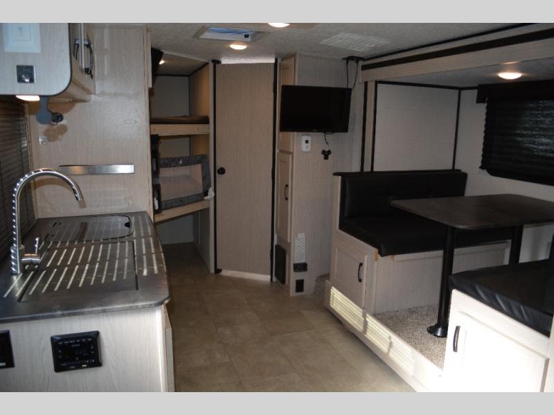 Have you been thinking about how your group can enjoy camping with their own double-size bunks while you have your own queen bed? You might even choose to include the Murphy bed option instead. This Apex Nano travel trailer also provides a booth dinette slide for inside dining, a camp kitchen for outdoor cooking, and a full bathroom for convenience wherever you decide to stay. You can store your fishing gear and outdoor chairs in the pass-through compartment, and hitch up and head out for a weekend or longer vacation. Choose this model today!