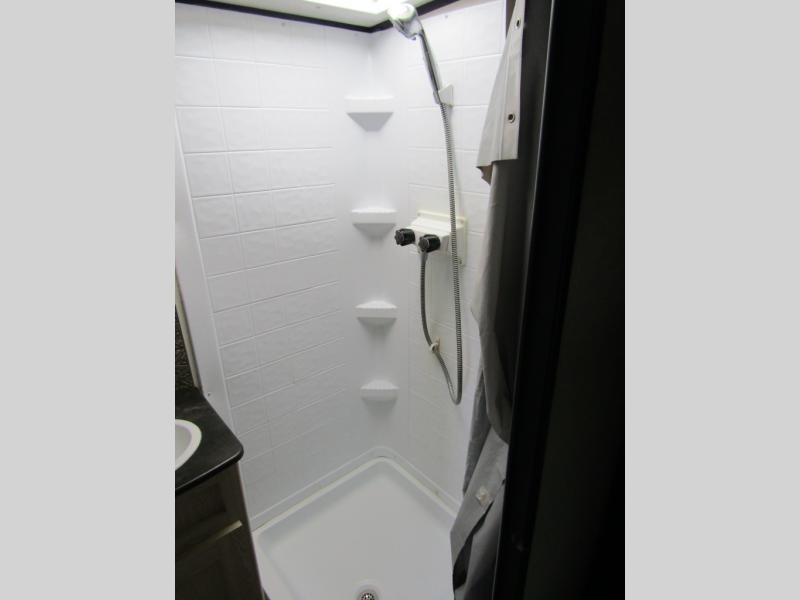 Each Coachmen Apex Nano travel trailer is super light in weight and features vacuum bonded Azdel fiberglass sidewalls and an Aluma-cage construction with a welded aluminum framed floor. Each travel trailer contains well built Pewter Maple cabinetry with hardwood mortise and tenon cabinet door frames, as well as Congoleum designer flooring throughout. You will also enjoy the high efficiency LED interior lighting, the AM/FM stereo with Bluetooth, the Evergreen sleep mattress, and the stainless steel microwave for you to warm up a quick snack. The skylight in each bath brings in more natural lighting and the outdoor shower helps eliminate any mud tracked through the trailer!