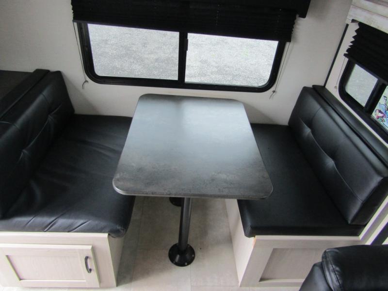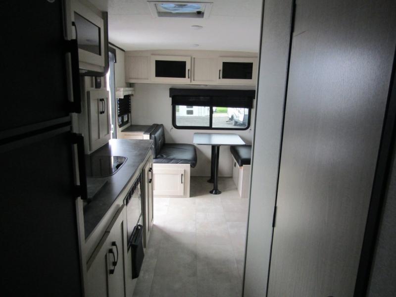 Enjoy each camping adventure with this Apex Nano as your home base! This unit features all of the necessities, plus some added space thanks to the slide out sofa. Model 213RDS offers sleeping for 4-5 with a queen bed up front and the furniture provided. You can make meals for the family with the kitchen amenities, and wash up after a fun day in the full bathroom. There is plenty of storage throughout on the interior along with a front exterior pass-through compartment for those larger items. Load up your family and gear, and start making memories!