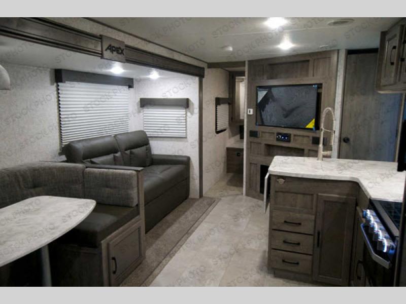 Every one of these Coachmen RV Apex Ultra-Lite travel trailers are lightweight, innovative, eco-friendly, and Certified Green by TRA certification! They are built with a good quality construction that includes Azdel walls, an aluma-cage construction, and an enclosed underbelly with forced air heat so you can travel even in the cooler months while keeping your unit protected. The front stone guard, ground effects metal skirting and ABS fender skirts will also protect your unit. The interiors will meet your needs with Congoleum DiamondFlor flooring to make cleaning easier, USB charging station to keep your electronics at 100%, and a digital TV antenna with cable hook-ups and WiFi capability so you can stay connected where ever you go!