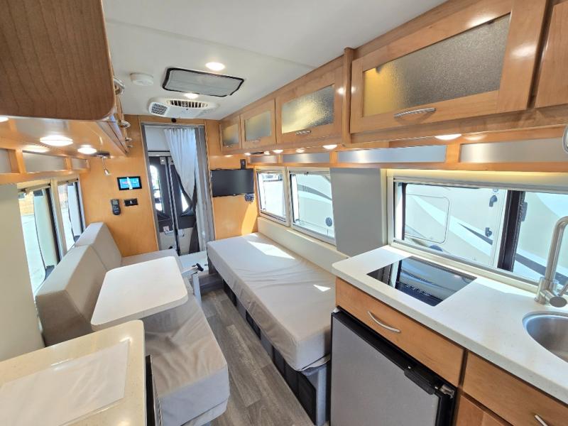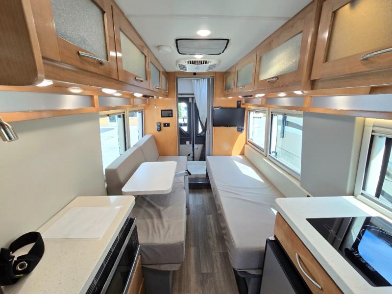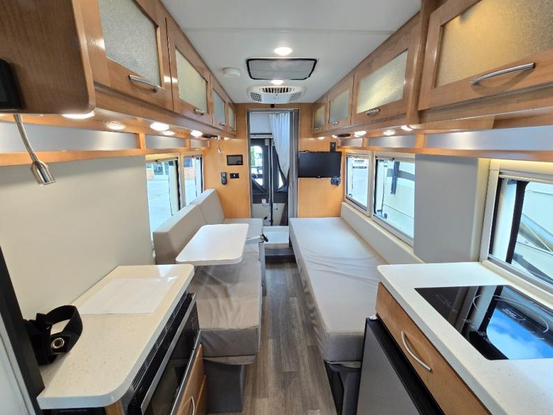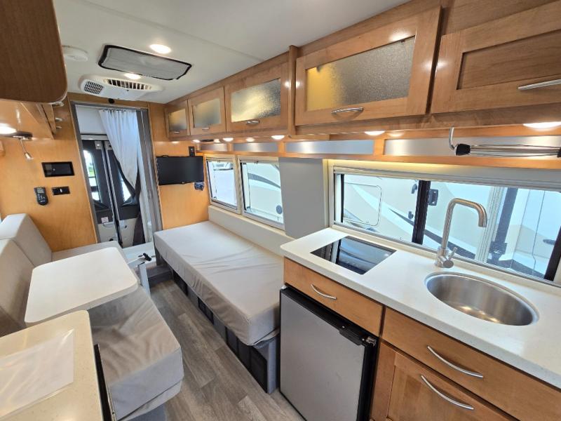 Go to infinity and beyond with this Beyond Class B gas motorhome! This coach has all of the essentials in a powerful vehicle that will fit any active lifestyle. You'll be able to tour like a pro since you have your own wet bath with flip-down sink and shower and your own galley kitchen with a two-burner LP cooktop, microwave, and refrigerator. The other features that make this coach comfortable enough to travel to far away places are the two twin-size beds, the Lagun table in between the beds, the removable table in between the cab seats, and the 24" LED Smart TV.
