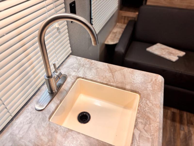 Your adventures will never be the same once you add the Coachmen Catalina Expedition travel trailer! These rugged and lightweight units have been decked out with off-road features, like a 3" lift kit, all-terrain tires, cambered structural steel I-beam frame, oversized off-road fender flares, a rear-mounted roof ladder, and an Off-Grid Solar Prep system. The exterior also has a "Leash Link" quick hook-up D-ring to keep your pets at the campsite with you, and the magnetic baggage door latches will keep the storage doors out of the way as you put gear in the trailer or take it out. An outside utility shower with hands-free holder is also going to be convenient, and the two JBL Elite exterior speakers will allow you to listen to music while you're gathered around the campfire.