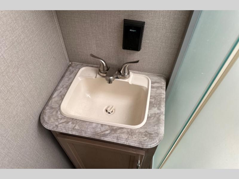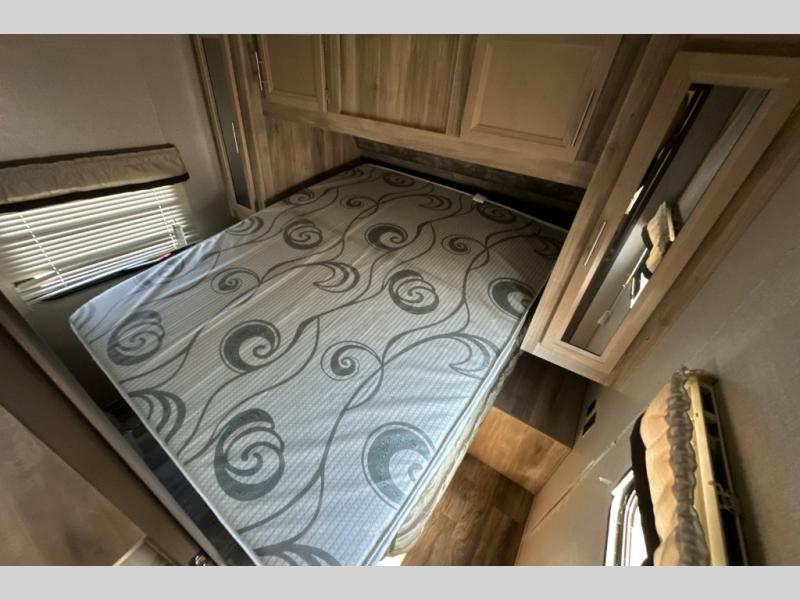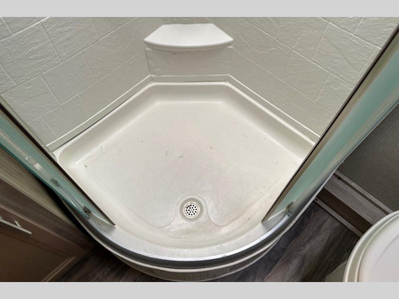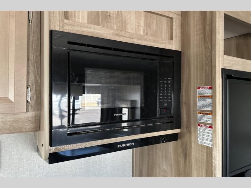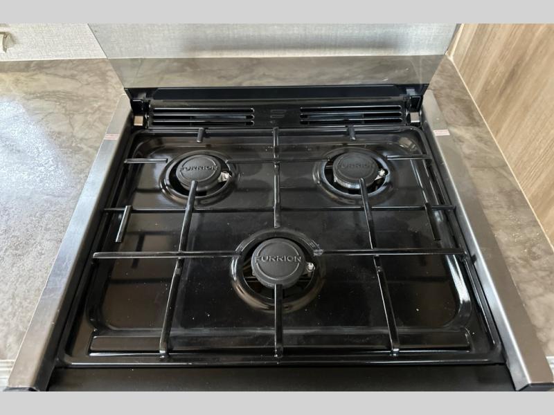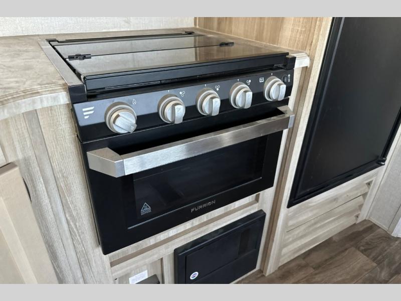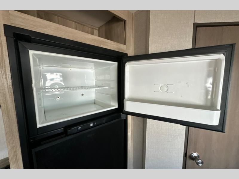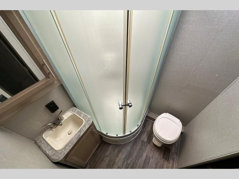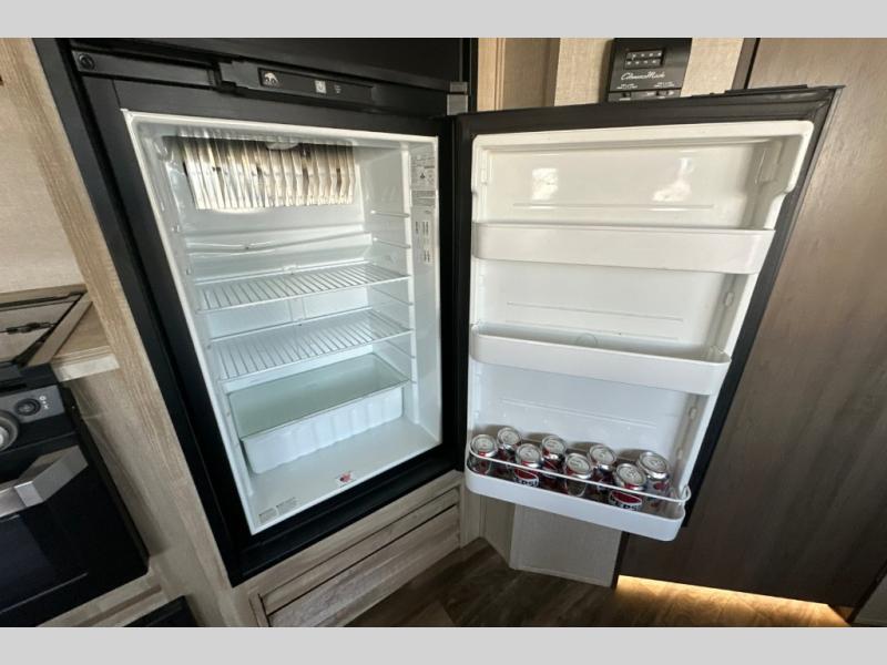 This popular couple's trailer provides a full-size super slide with a dinette and sofa, extra-large pantry/wardrobe storage, and a breakfast bar with optional stools. The full bathroom is spacious thanks to the radius shower and offers privacy for your guests. You can take turns cooking with full kitchen amenities, while the other watches the all-in-one entertainment 32" TV with independent dual zone control, or relax under the 15' power awning. And when it's time to sleep, the private front bedroom offers a walk-around queen bed and lots of storage. You can even tow this trailer with your half-ton truck thanks to the towing weight and length.
