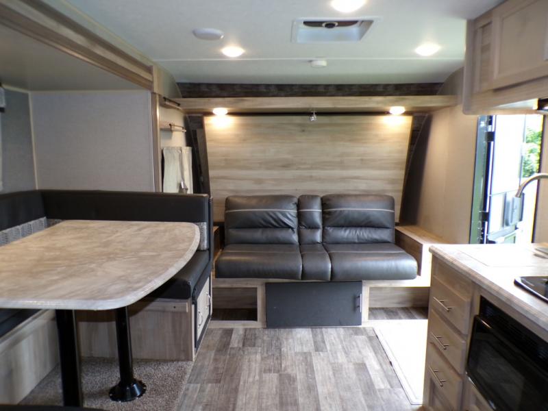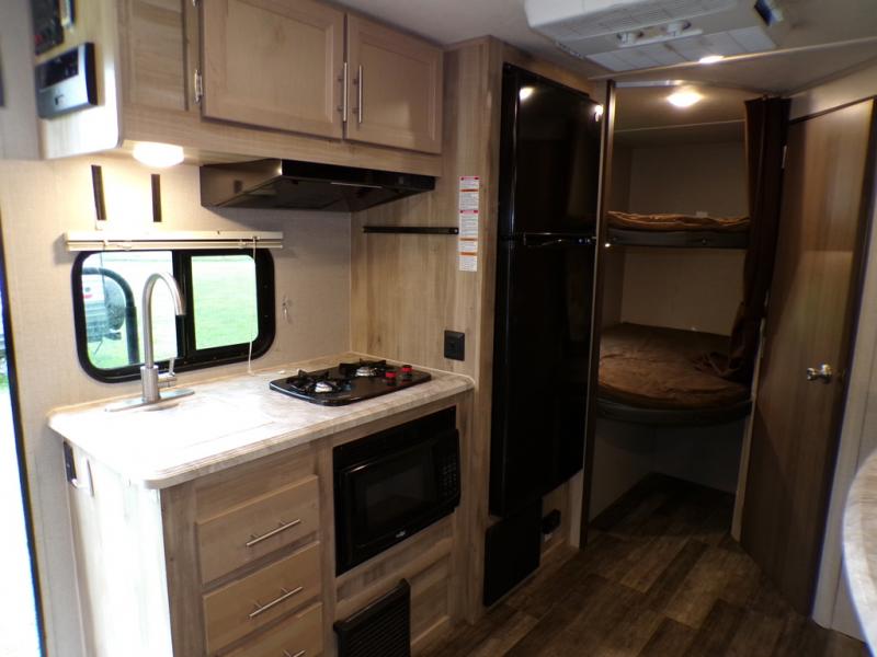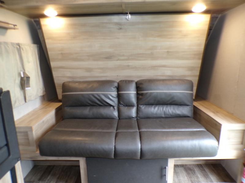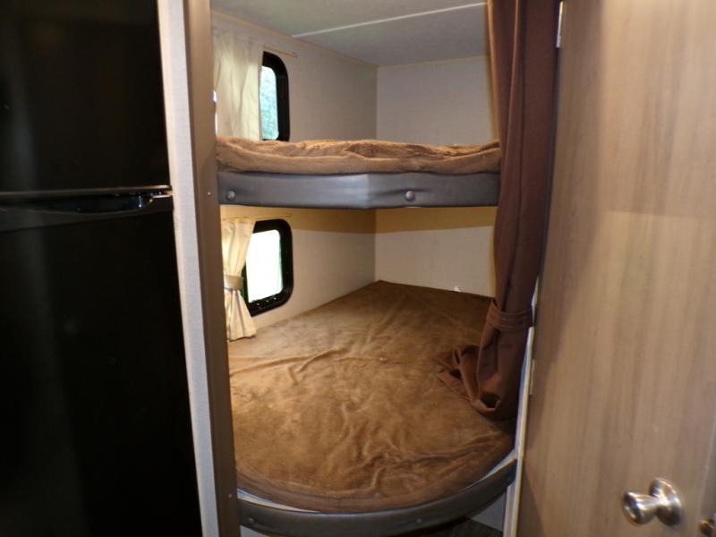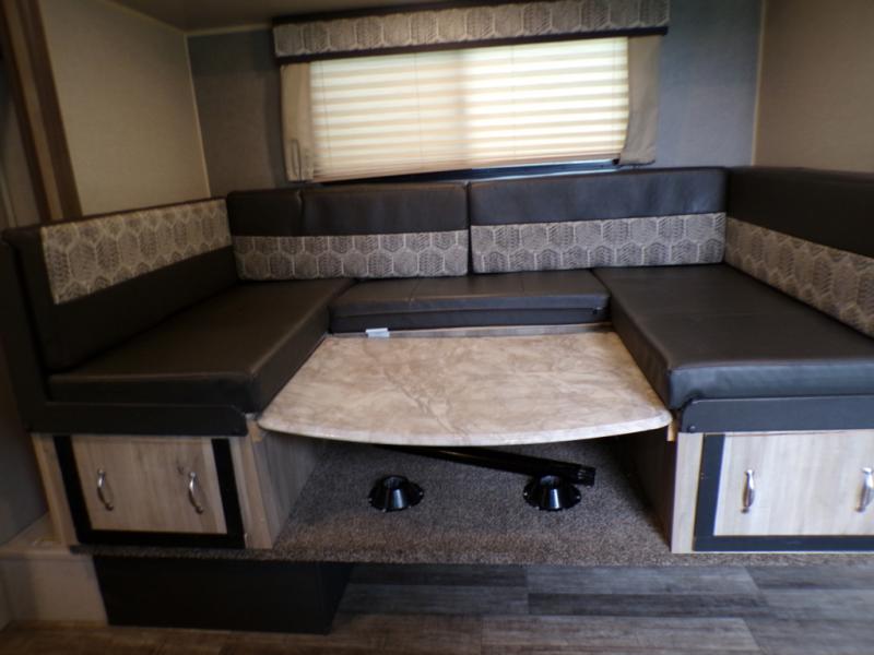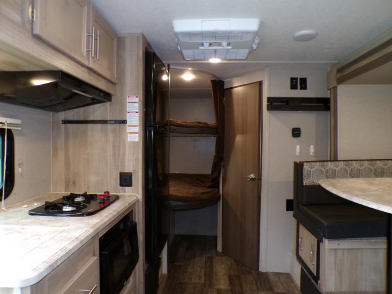 Easily load up and head out to camp and explore in this family trailer which includes double-size bunks next to the full bathroom, and a Murphy bed/sofa up front offering both a living area and bedroom depending if the sofa is set up or the bed. Everyone will be comfortable with this space savings feature, and the kids can invite friends with sleeping space for eight! The U-shaped dinette gives everyone a place to dine inside, or head outside to grab your camping chairs from the pass-through storage and dine under the 15' power awning with your choice of LED color. There is much more to enjoy inside and outside, and you might like to add the optional camper kitchen as well.