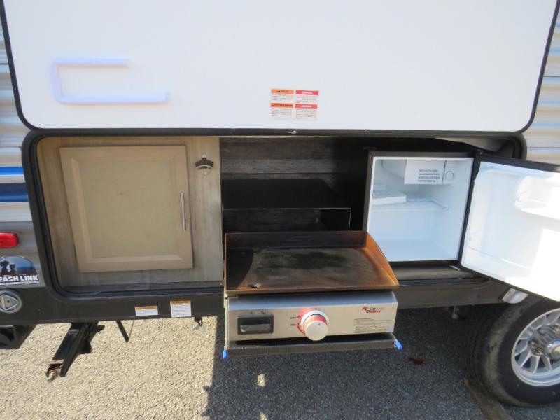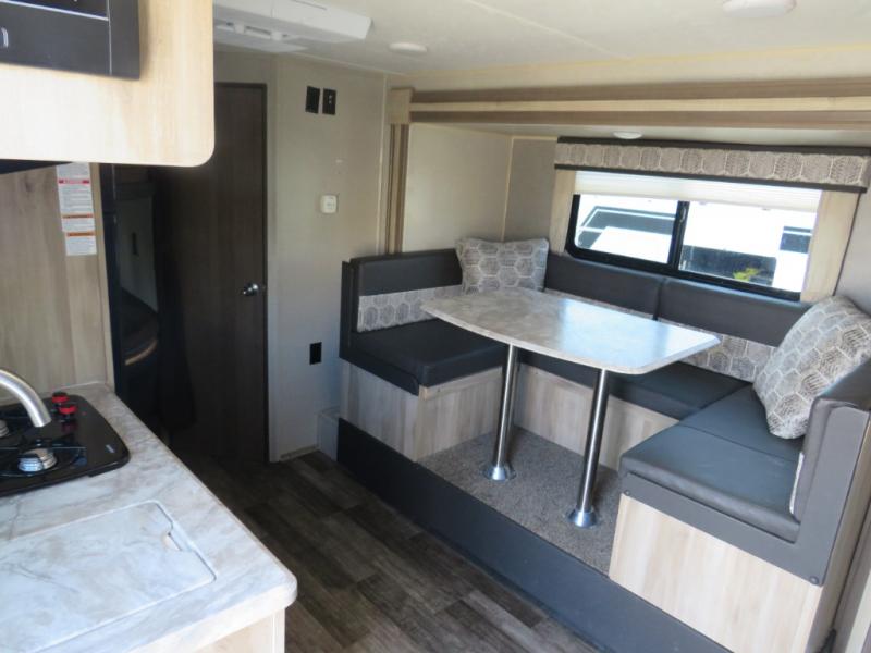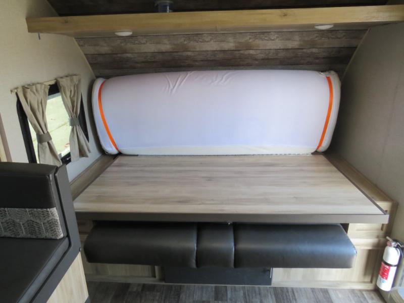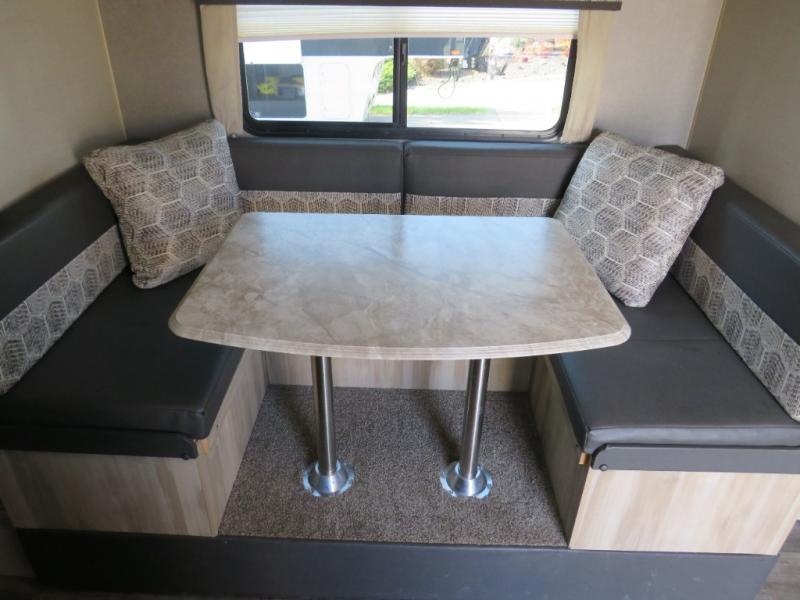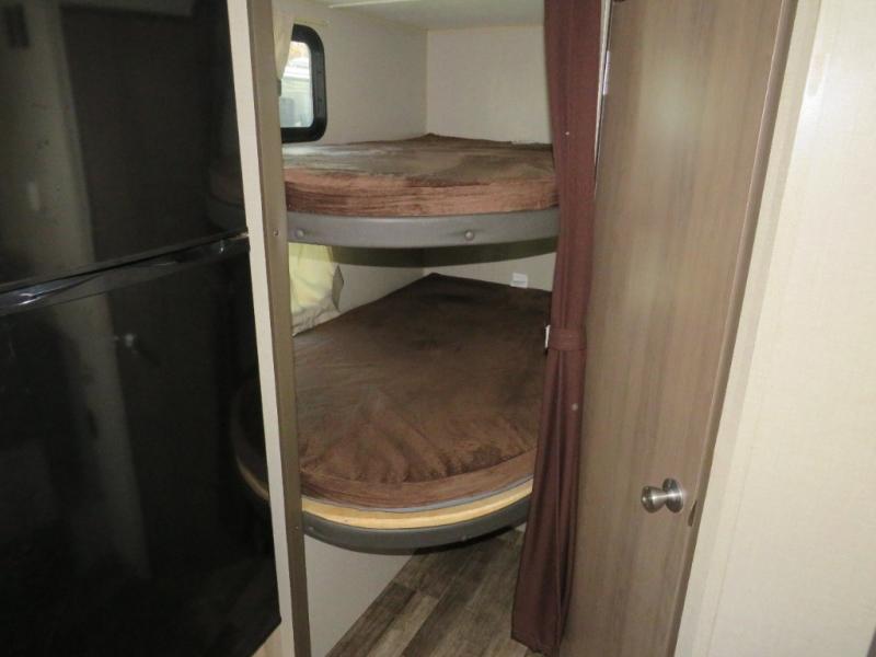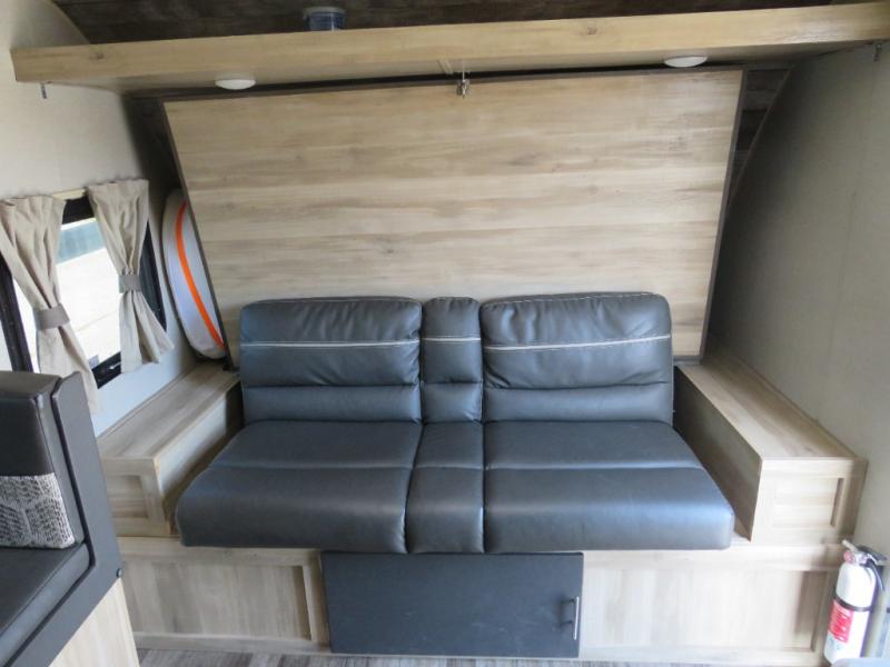 Easily load up and head out to camp and explore in this family trailer which includes double-size bunks next to the full bathroom, and a Murphy bed/sofa up front offering both a living area and bedroom depending if the sofa is set up or the bed. Everyone will be comfortable with this space savings feature, and the kids can invite friends with sleeping space for eight! The U-shaped dinette gives everyone a place to dine inside, or head outside to grab your camping chairs from the pass-through storage and dine under the 15' power awning with your choice of LED color. There is much more to enjoy inside and outside, and you might like to add the optional camper kitchen as well.