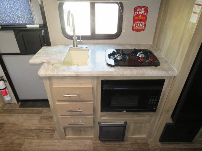 The Catalina Summit Series 7' by Coachmen RV are lightweight, single axle travel trailers that are both easily maneuverable and affordable making them a wise investment for family adventures! Each is constructed with a cambered structural steel l-beam frame, a seamless Alpha roof membrane, fiberglass insulation throughout, screwed cabinet construction with pocket bored lumber core stiles and 78" interior height for a spacious interior. Along the exterior you will find a power awning with multi-color LED lighting and a remote, two JBL Elite speakers, a battery disconnect switch on the A frame and an LP quick connect port. The interior offers seamless Thermofoil countertops throughout, an under-mount farm style sink, a slim line range hood, and Congoleum Woodplank linoleum flooring for style and durability. Start exploring and pushing the boundaries, choose your favorite today!