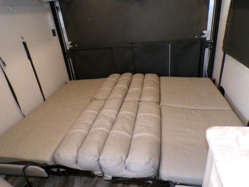 The Coachmen Catalina Trailer Blazer toy hauler puts the fun in functional! Not only do you have the convenience of an excellent toy hauler, but you also have an abundance of amenities within the trailer itself. With a long list of interior features, there isn't much that has been left out, and the exterior features are also desirable, plus there are new 2021 features added. You will find a power awning with multi-color LED lighting and remote, an upgraded graphics package, an all-in-one entertainment TV with an independent dual zone control, upgraded JBL Elite exterior speakers with LED lighting, magnetic baggage door latches, and an enclosed and fully sealed underbelly. The interior offers you new linoleum flooring, bedrooms USB surface mounts, an upgraded slim design range hood, an all-in-one monitor panel system, and under-bed storage. Plus, if you choose to add the optional party deck to your unit, you can have endless summer gatherings.