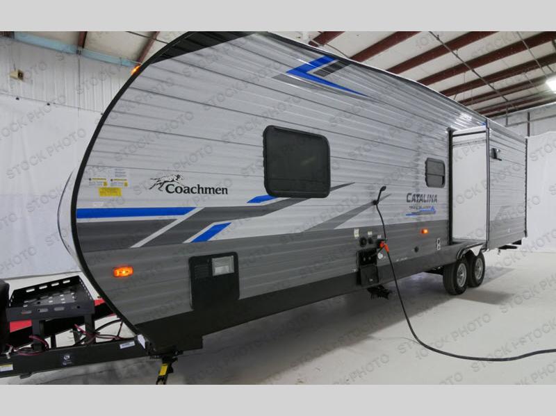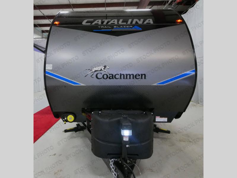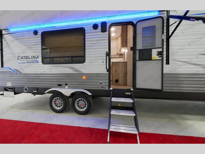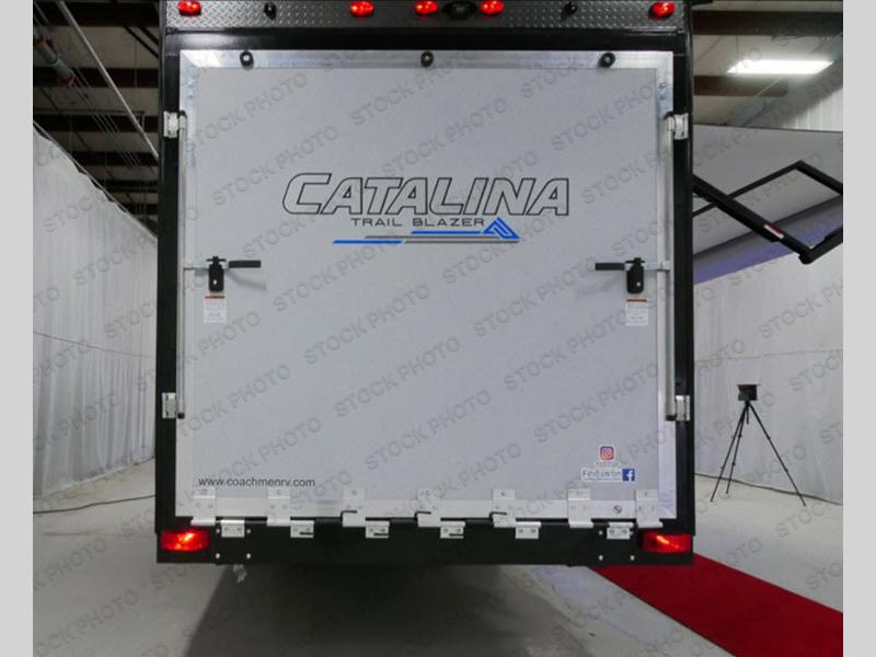 The Coachmen Catalina Trailer Blazer toy hauler puts the fun in functional! Not only do you have the convenience of an excellent toy hauler, but you also have an abundance of amenities within the trailer itself. With a long list of interior features, there isn't much that has been left out, and the exterior features are also desirable, plus there are new 2021 features added. You will find a power awning with multi-color LED lighting and a remote, an upgraded graphics package, an all-in-one entertainment TV with an independent dual zone control, upgraded JBL Elite exterior speakers with LED lighting, magnetic baggage door latches, and an enclosed and fully sealed underbelly. The interior offers you new linoleum flooring, bedrooms USB surface mounts, an upgraded slim design range hood, an all-in-one monitor panel system, and under-bed storage. Plus, if you choose to add the optional party deck to your unit, you can have endless summer gatherings.