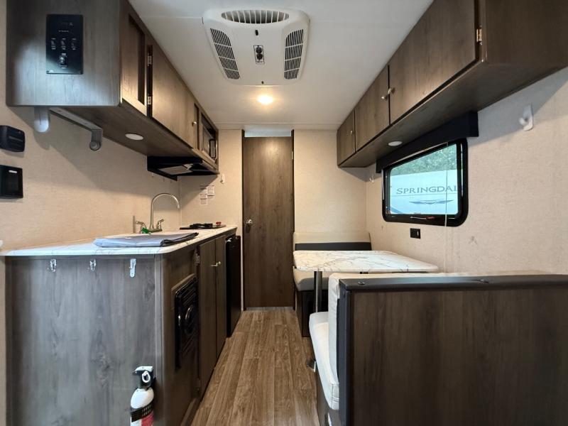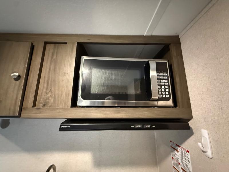 Do you and your spouse wish to escape the hustle and bustle of everyday life? Well then, let this Clipper Cadet give you plenty of space to move around, as well as provide you with necessary accommodations when you travel. LED lighting will brighten up the whole unit. A space to sleep is a key feature that is needed, which the comfortable queen bed provides just that. If you need an additional sleeping space, you can easily convert the booth dinette from a dining table to a bed. You will also be able to enjoy the outdoors to its fullest, in most weather occasions, because of the power awning.