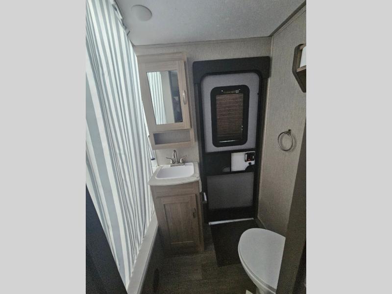 If you've been itching to get out and explore, choose the Coachmen Freedom Express Liberty Edition travel trailer! These trailers will give you traveling freedom by offering you an effortless towing experience with its lightweight and aerodynamic design. Some of the new upgrades to the Freedom Express Liberty Edition are the full fiberglass front cap with automotive glass windshield, the five-point stabilizer power tongue jack system, the enclosed central control panel, the solid-surface kitchen countertops, and the slam-latch baggage doors. The TV and radio antenna is prepped for Wi-Fi/4G for great convenience, and there is also an exterior TV hook-up.