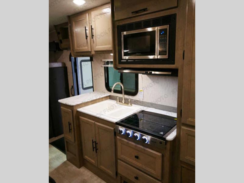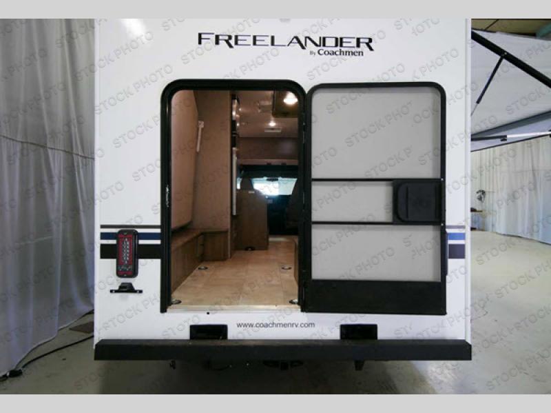 With the Coachmen Freelander motorhome you will get a reliable and quality Class C gasoline coach that contains more factory-installed features than anyone else. The Freelander features Azdel composite sidewall substrate and a fiberglass exterior to keep the entire structure lightweight. You will love the interior with its hardwood cabinet doors and drawer fronts, pleated night shades, a skylight over the shower, plus a systems command center to control your units functions in one convenient location. You can bring along all of your belongings with the roto-cast rear warehouse storage compartment, and the power awning includes vinyl weather guard to help protect from the elements, plus there are LED lights for an inviting outdoor living space.
