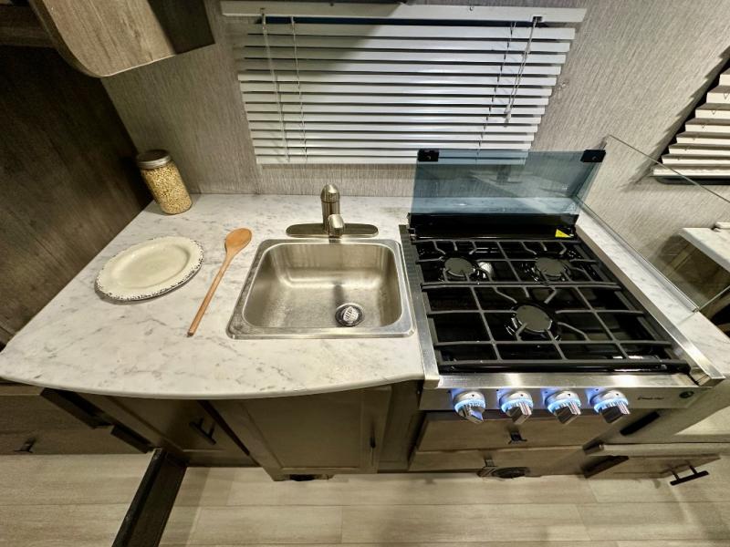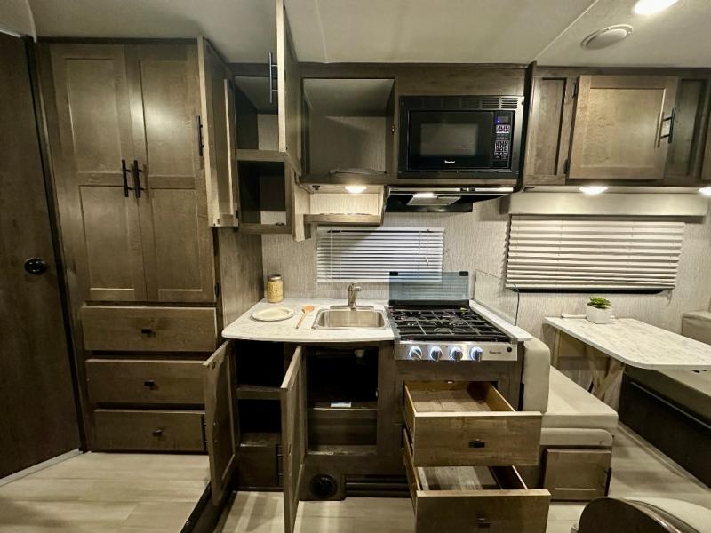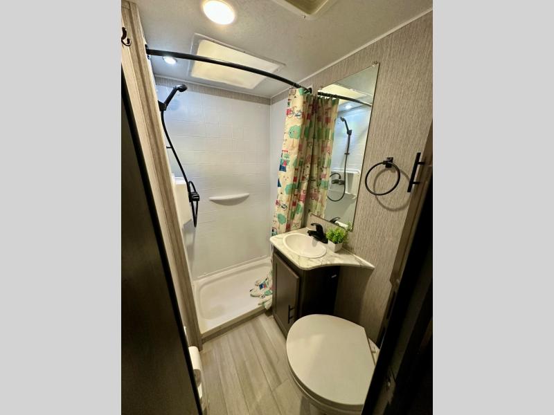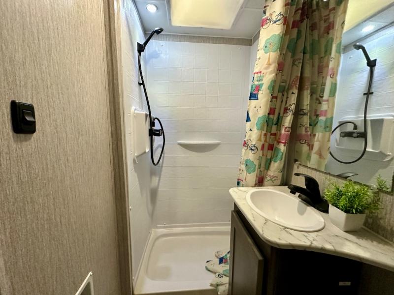 Sit back, relax, and enjoy your time touring with this Leprechaun Class C gas motorhome! The interior will provide you with more interior living space, and the shower skylight will also provide you with more head space while you are getting clean. You will be able to keep your family full with loads of delicious meals that have been prepared on the three-burner range in the full kitchen, and you can also use the residential-size microwave oven to heat up quick meals if you are headed out on another adventure. The queen bed features massive under-bed storage for your luggage, extra blankets, or board games, and there is a closet to hang your clothes! This model also includes the CRV Comfort Ride that comes with electronic stability control, heavy duty front and rear stabilizer bars, Firestone Ride-Rite adjustable rear air bags, and more!