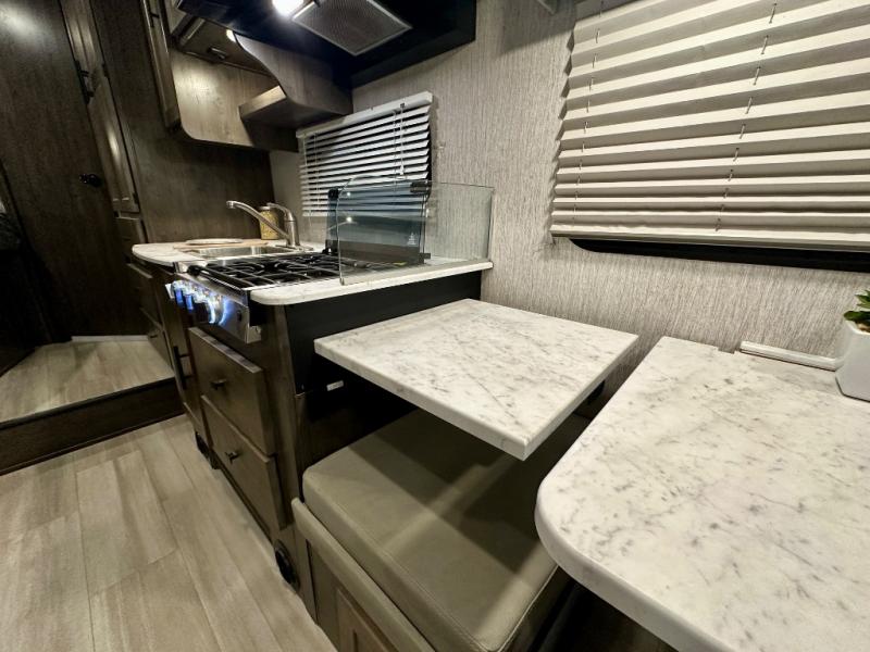 With each Leprechaun Class C gas motorhome by Coachmen you will enjoy "better" interior appointments, like the premium hardwood cabinet doors and drawer fronts, the one-piece thermofoil countertops, and the premium vinyl flooring. You will sleep soundly each night on the upgraded mattress, and staying clean will be easy with the premium showerhead and faucet in the bath. These models include reclining captain's seats, cruise control, and a rear backup camera so you can easily get in and out of the campground. The Leprechaun is constructed with Azdel composite sidewalls, CrossFlex PVC, polyester reinforced roof material, and vacu-bond laminated walls, roof, and floor for a durable motorhome made to last.