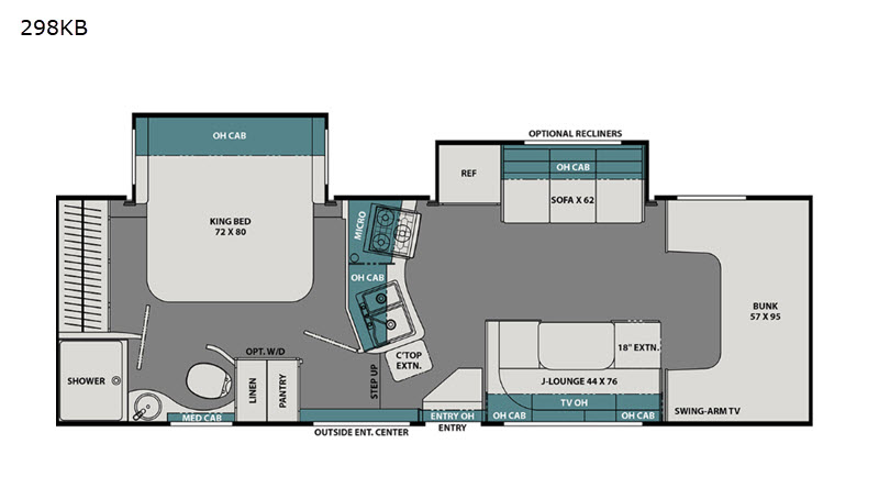 It won't be hard for you to find a reason to take this Leprechaun Class C gas motorhome out to a new campsite! You will want to spend all your free time touring scenic destinations because of the comfortable accommodations that this coach offers, like a king-size bed in the rear private bedroom, a full bathroom with a skylight above the shower, and a J-Lounge and 62" sofa in the main living area. Keep all of your essentials stored away when not in use with the help of the linen closet in the bathroom, the pantry in the kitchen, and the exterior warehouse storage compartment.