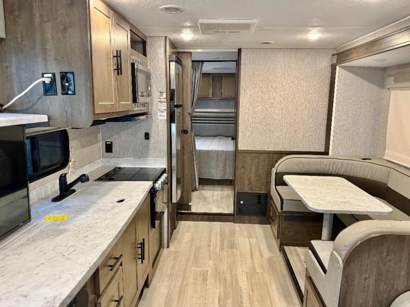 Each Leprechaun Class C gas motorhome offers you "better stuff." Better construction, better interior appointments, and better safety features and conveniences are what you will find all throughout these models. From the Azdel composite sidewall construction, the Water Works utility system, and the CrossFlex reinforced PVC roof material, to the Wi-Fi Ranger Sky4 which boosts weak Wi-Fi signals, you can enjoy any model you choose for years to come. Inside features will also impress, but if you just can't get enough of the outdoors, the power awning will surely be a favorite feature to have. The Leprechaun is ready for any getaway, whether just a day trip sightseeing or an extended week of travel fun!