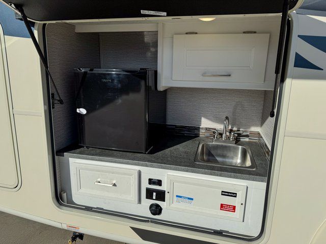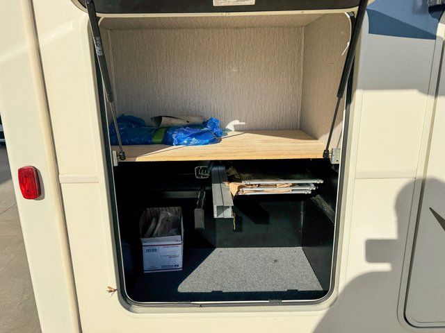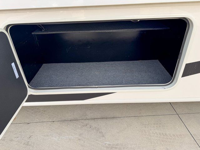 Outside, the large pass-through basement storage provides plenty of space for camping gear, chairs, and outdoor equipment.